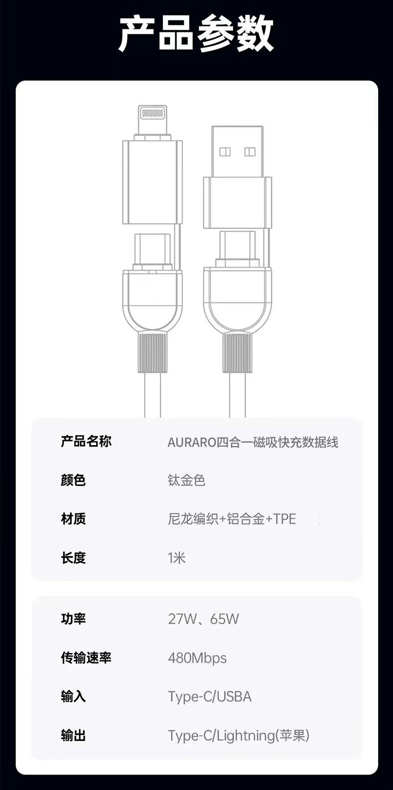 AURARO四合一磁吸快充线G22