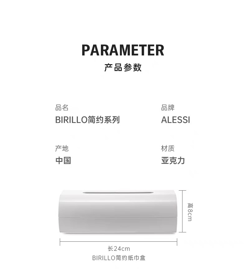 ALESSI/Birillo简约纸巾盒卫浴车载客厅抽纸盒家用收纳轻奢