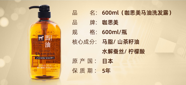熊野无色素无硅纯天然弱酸性马油洗发水600ml 012752