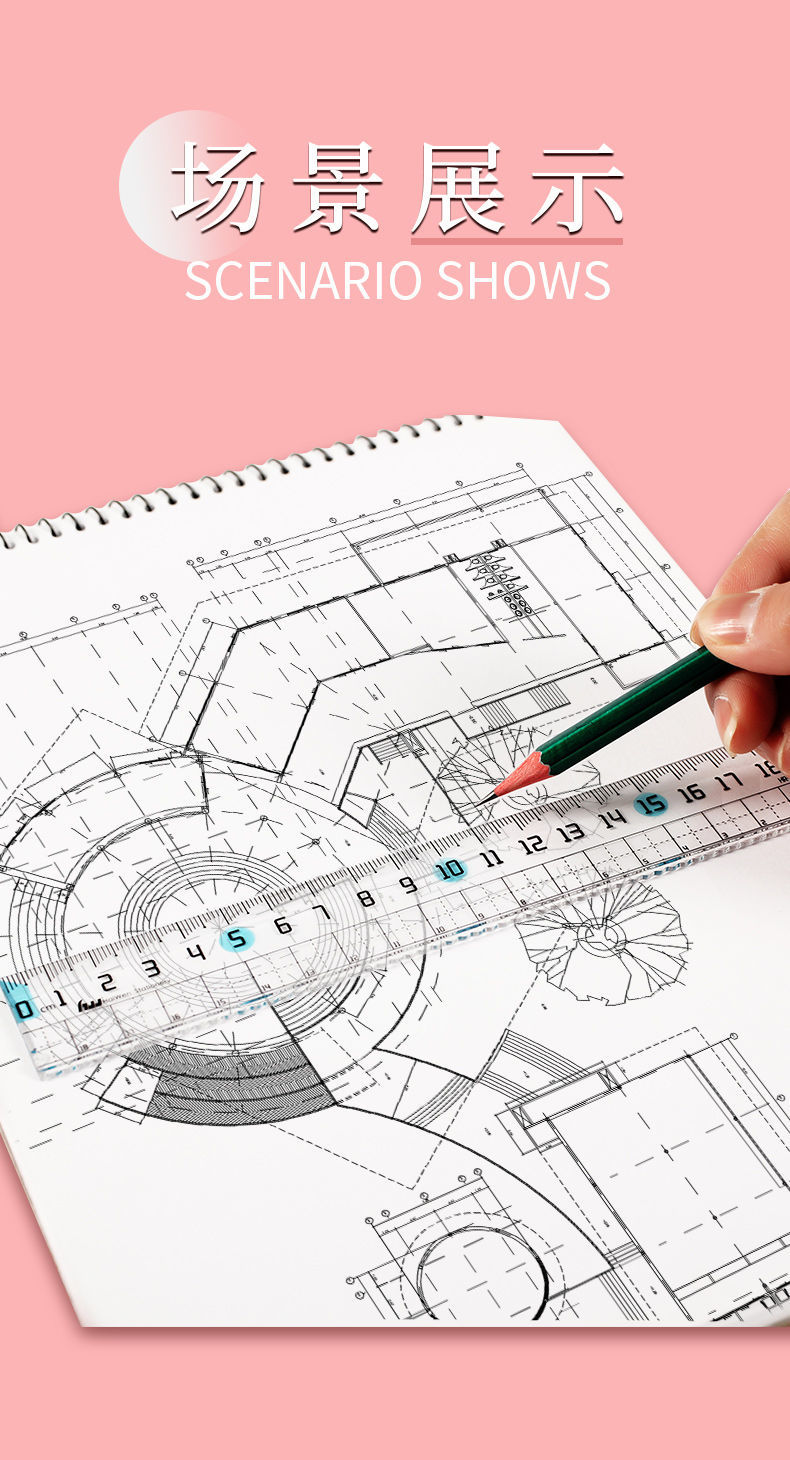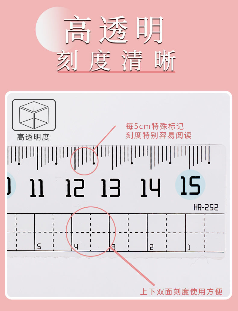 【防近视直尺】格尺带波浪线直尺小学生专用15厘米文具18cm透明尺子测绘图