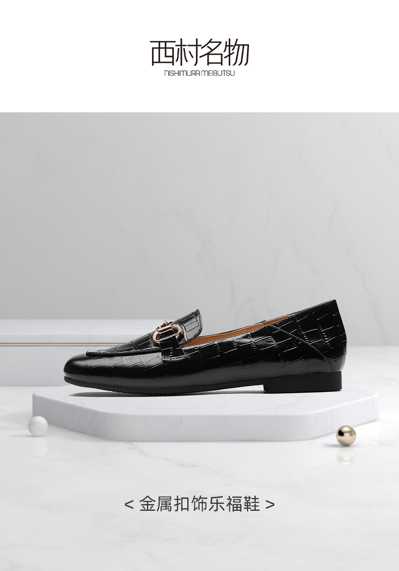 西村名物2021春季新款一脚蹬乐福鞋女复古休闲懒人平底单鞋X21AM11231