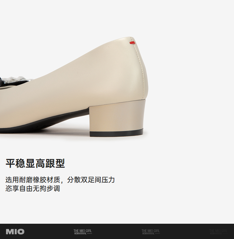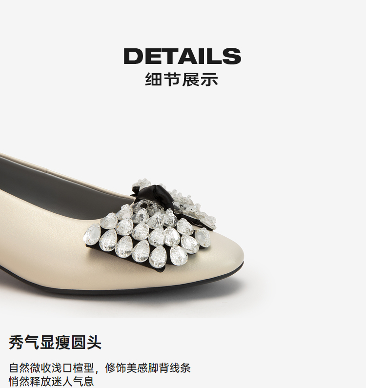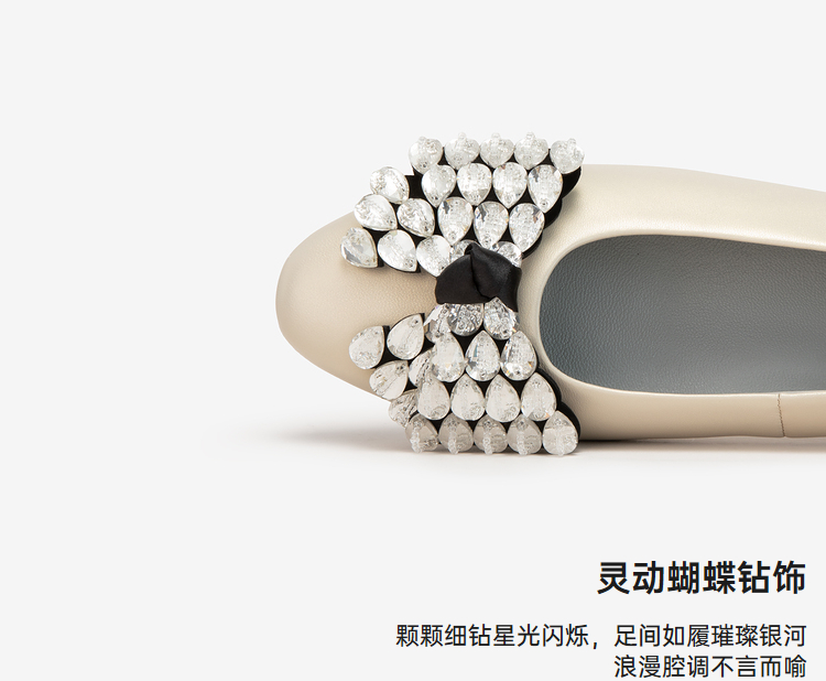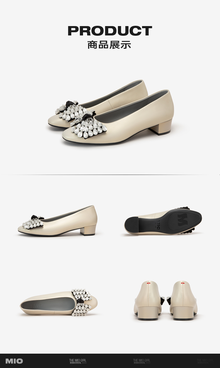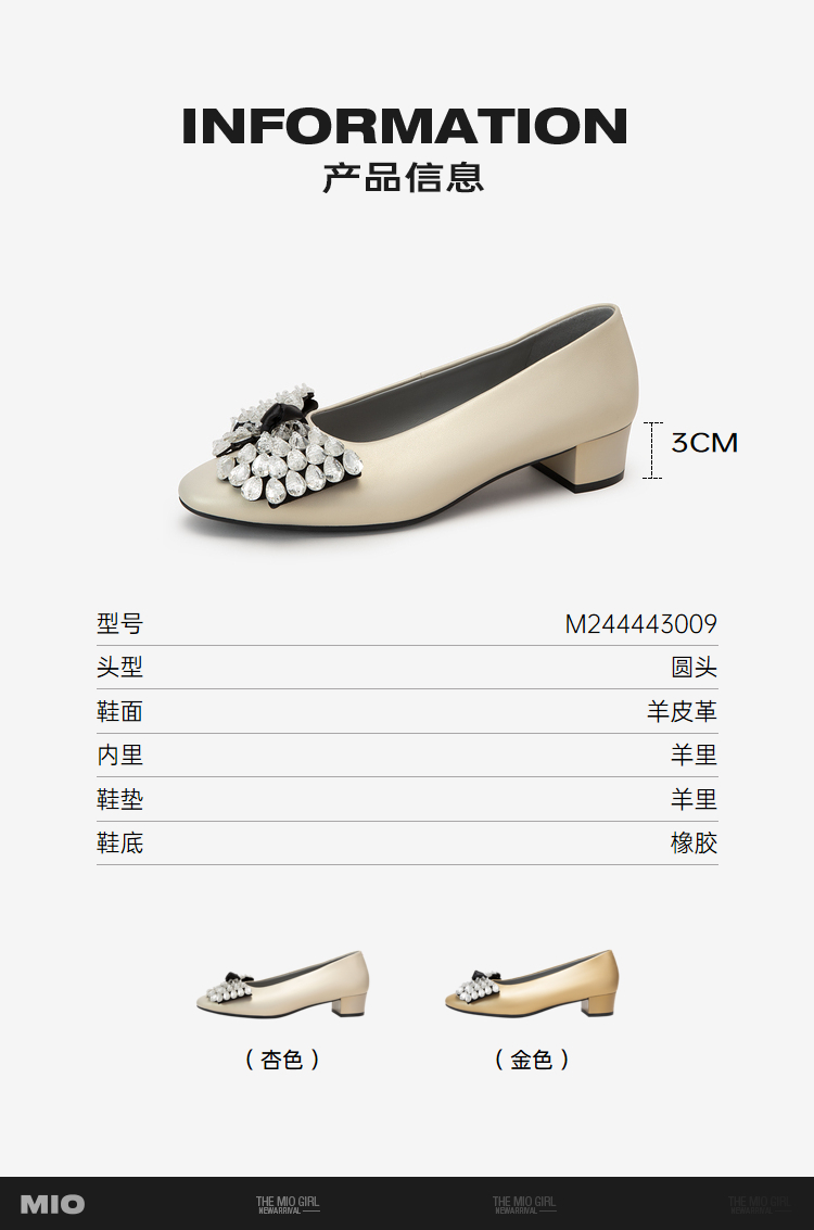 MIO米奥秋季圆头低跟时装单鞋蝴蝶钻饰时髦舒适浅口单鞋女M244443009