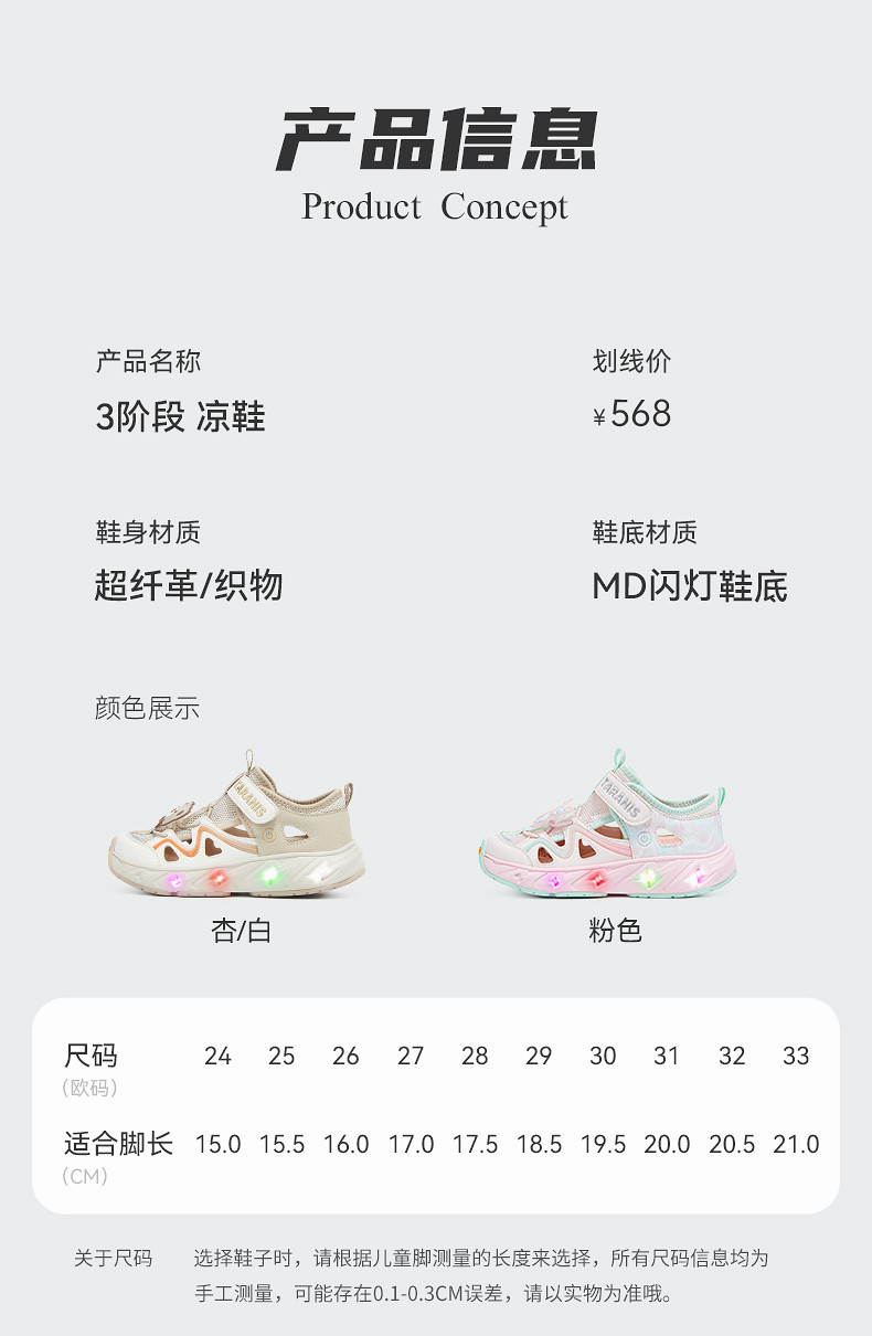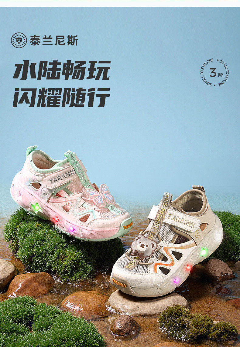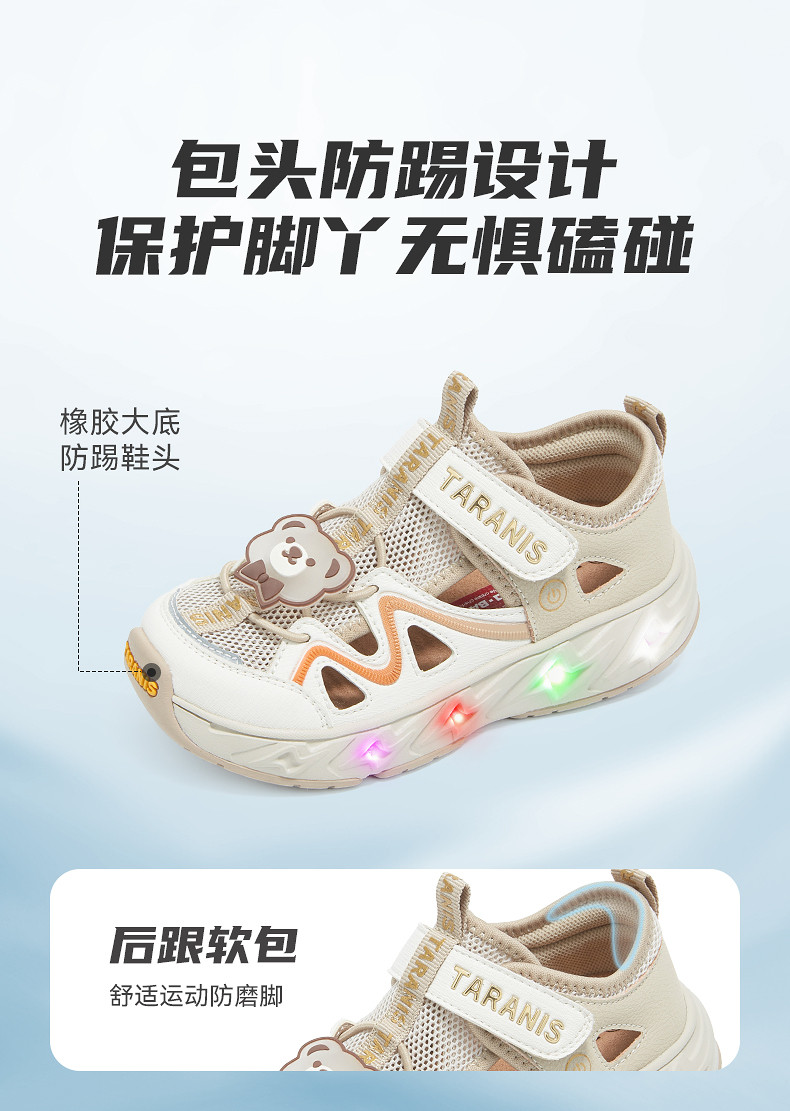 泰兰尼斯儿童凉鞋溯溪鞋2026夏新款男女童运动包头闪灯户外涉水鞋T07X6B8784