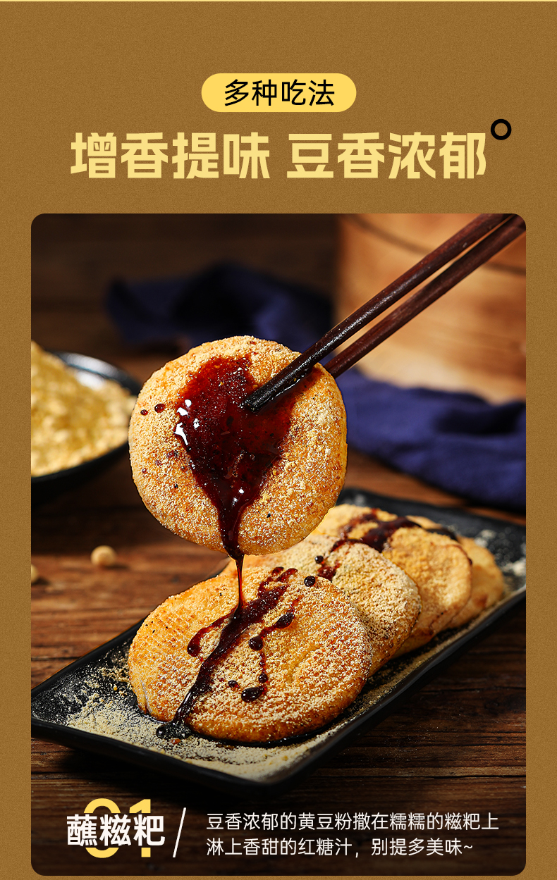 璞匠炒熟黄豆面粉即食红糖糍粑驴打滚糯米糕蘸料烘焙独立小包装