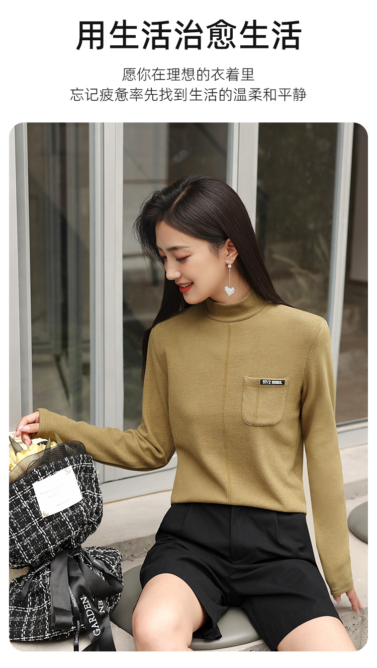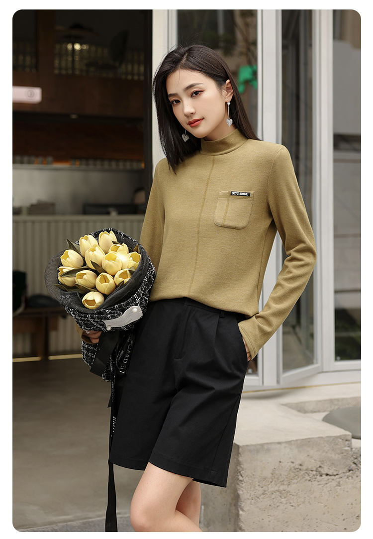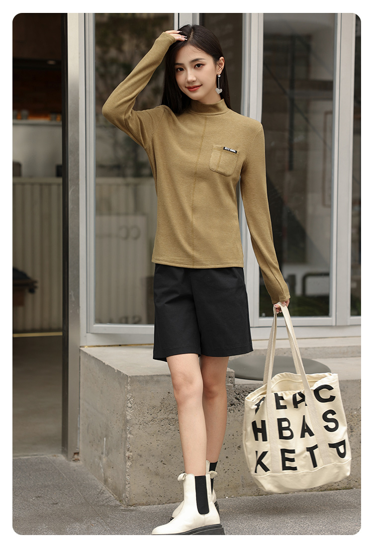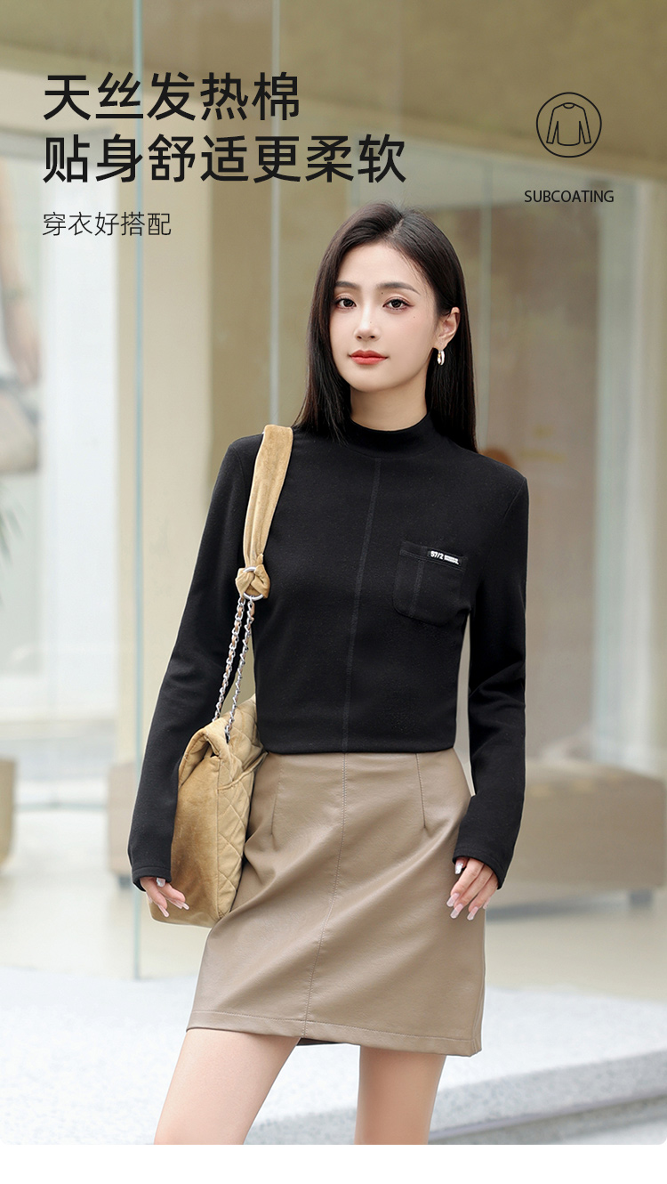 新款打底衫小立领莱赛尔天丝品质上衣打底简约纯色女可外穿SZ2696