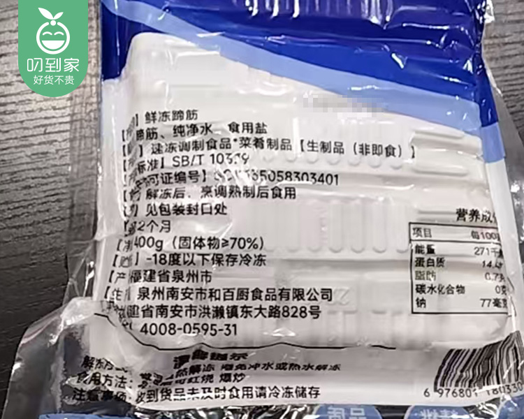 鲜冻猪蹄筋(400g/包 固形物含量≥90% 已泡发)生产日期: 3月