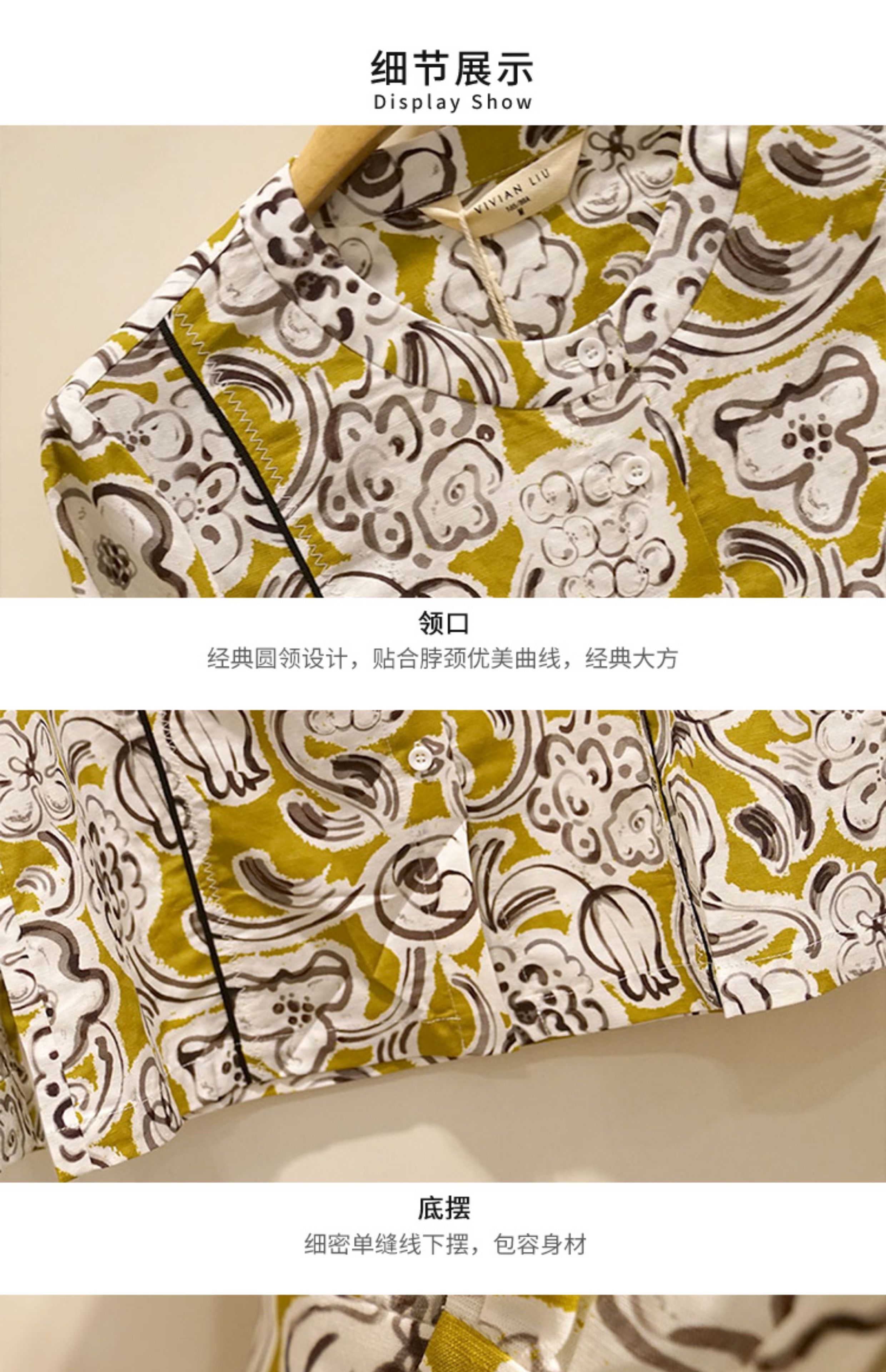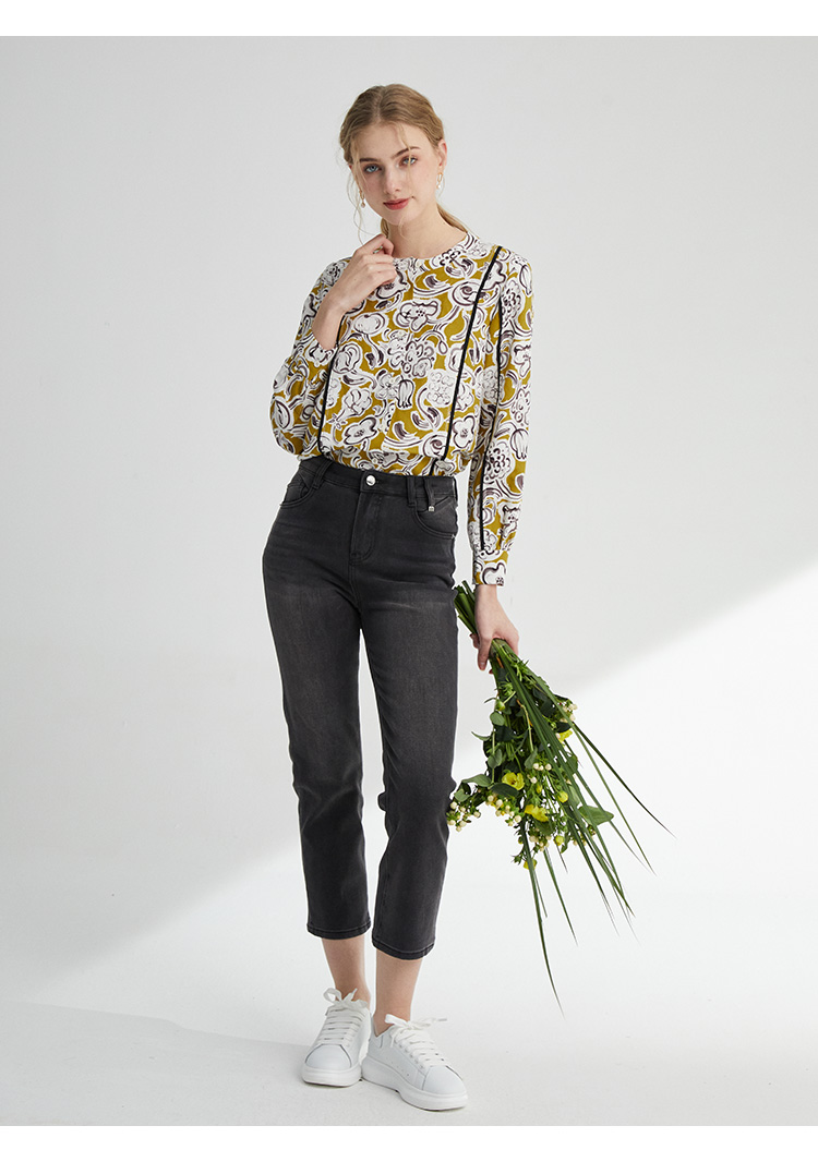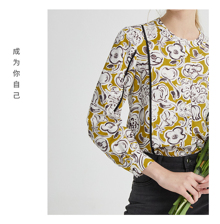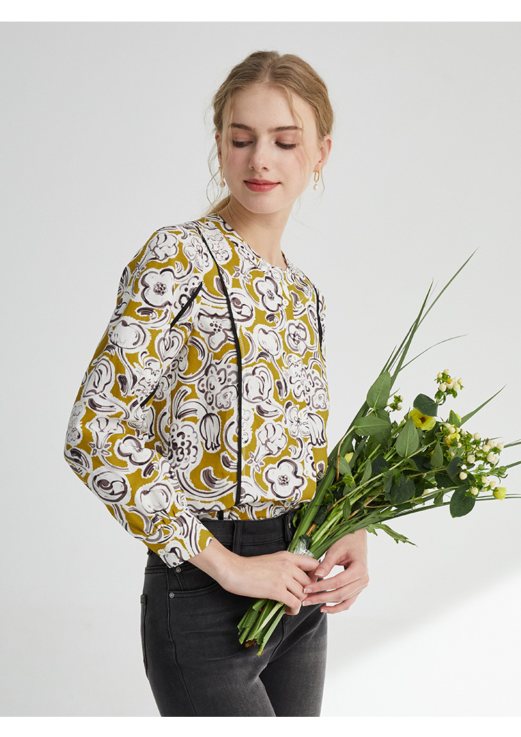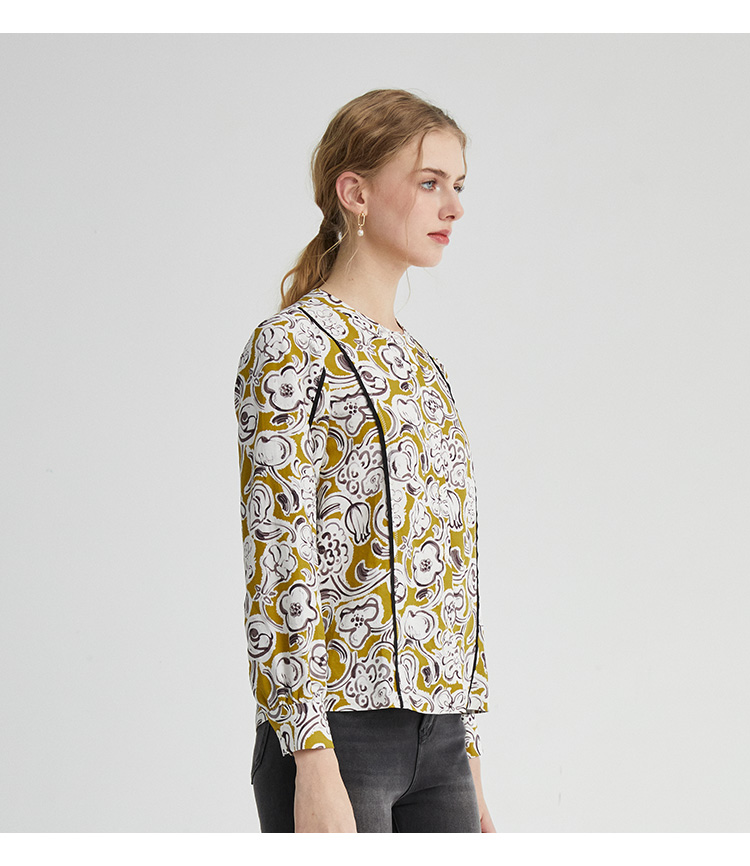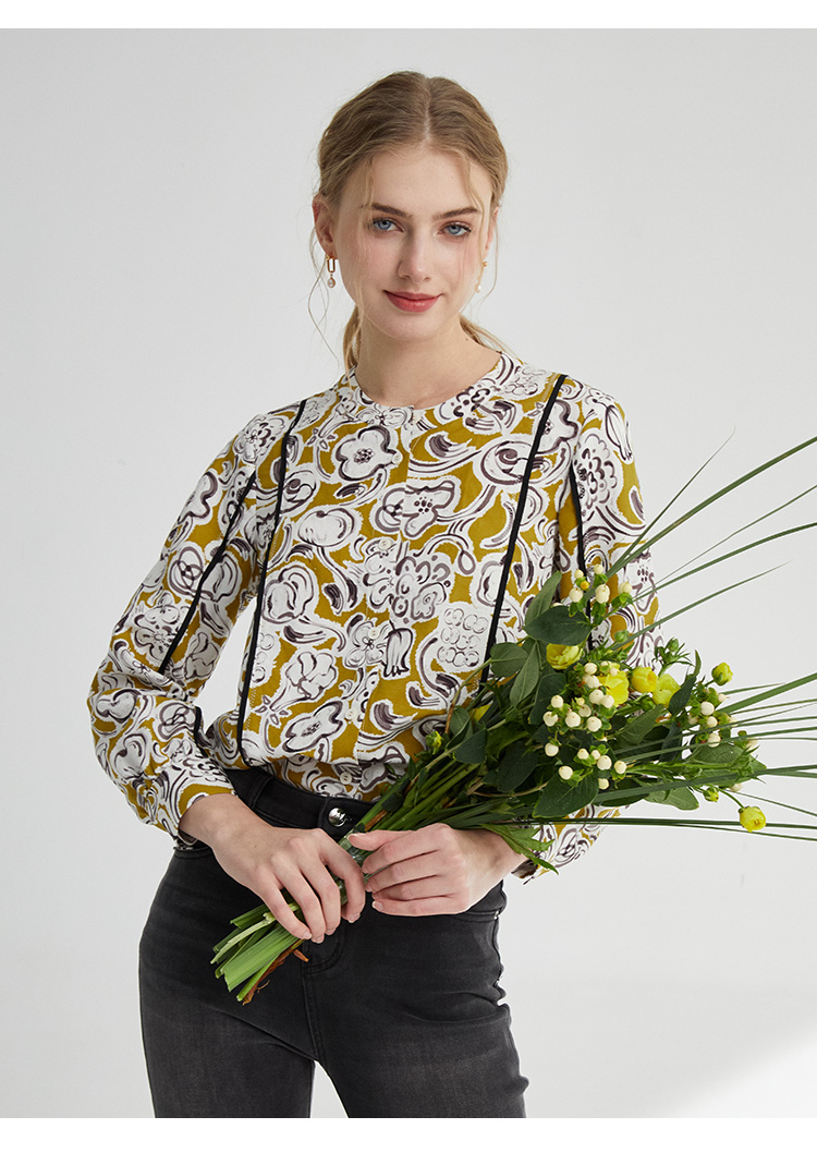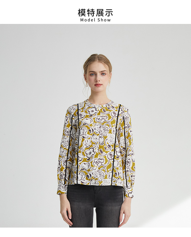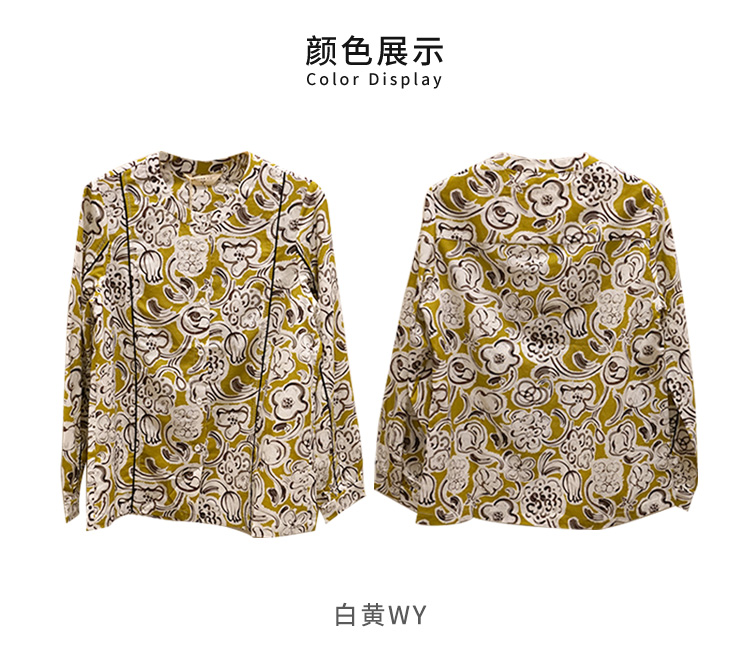 VIVIAN LIU薇薇安刘D2413001夏女装新款圆领印花长袖衬衫