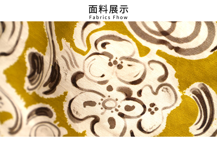 VIVIAN LIU Y2234107夏女装新款大方领前胸抽褶印花短袖连衣裙