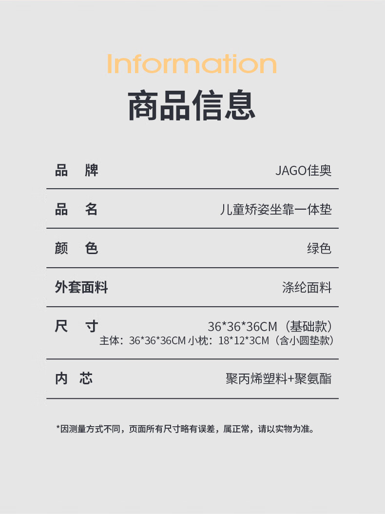 佳奥(JAGO)儿童矫姿坐靠一体垫坐垫靠垫一体靠枕学生久坐护腰垫矫正坐姿靠背 儿童矫姿坐靠一体垫【基础款】