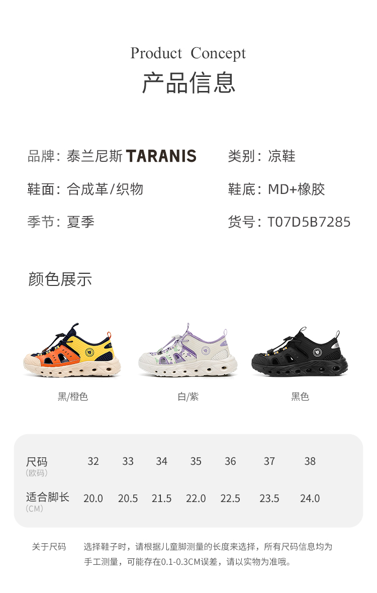 泰兰尼斯夏季中大童时尚百搭运动溯溪鞋T07D5B7285