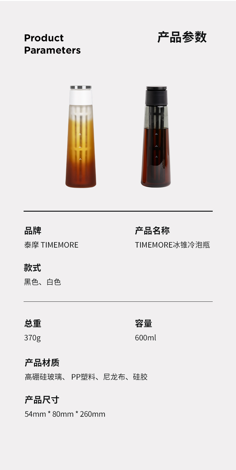 泰摩 冰锥冷泡瓶咖啡冷萃壶家用冷萃杯冰咖啡玻璃壶过滤茶壶送礼