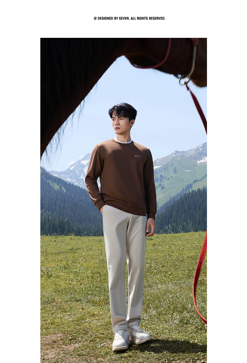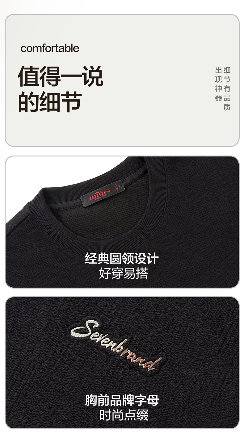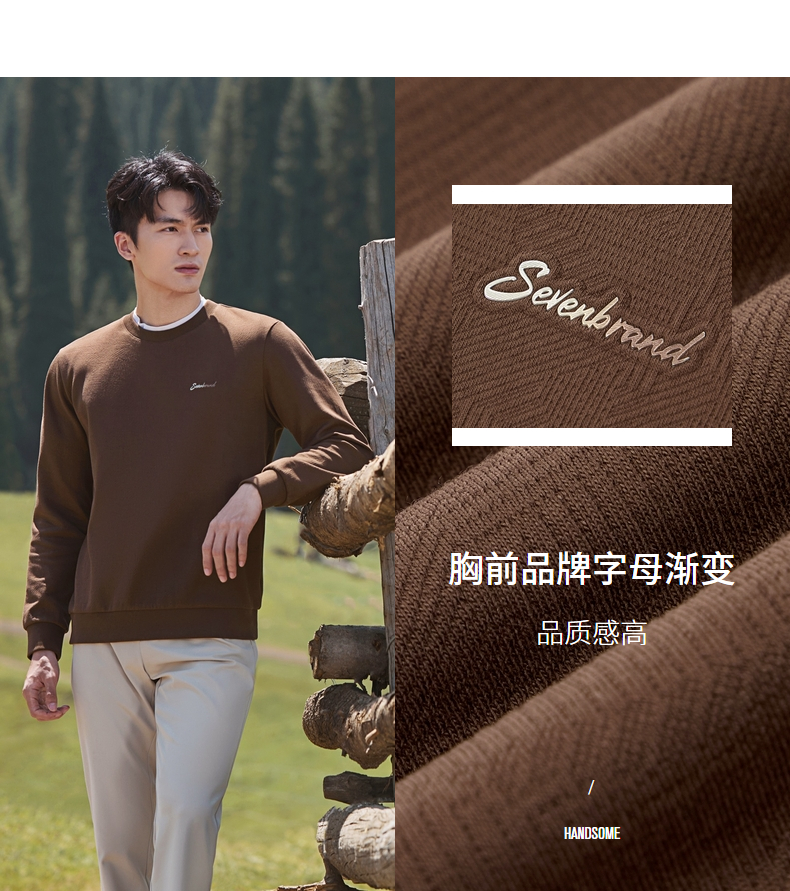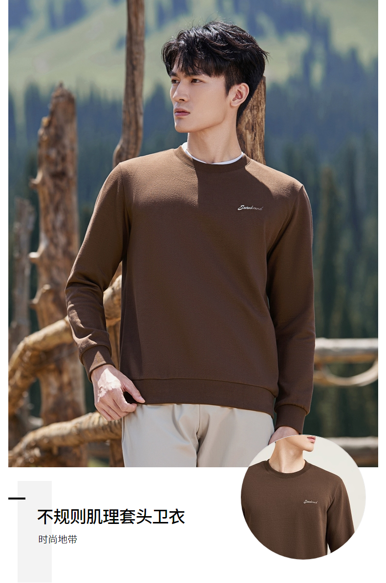 【提花肌理卫衣】柒牌男装长袖套头卫衣圆领提花休闲中青年上衣129W70390