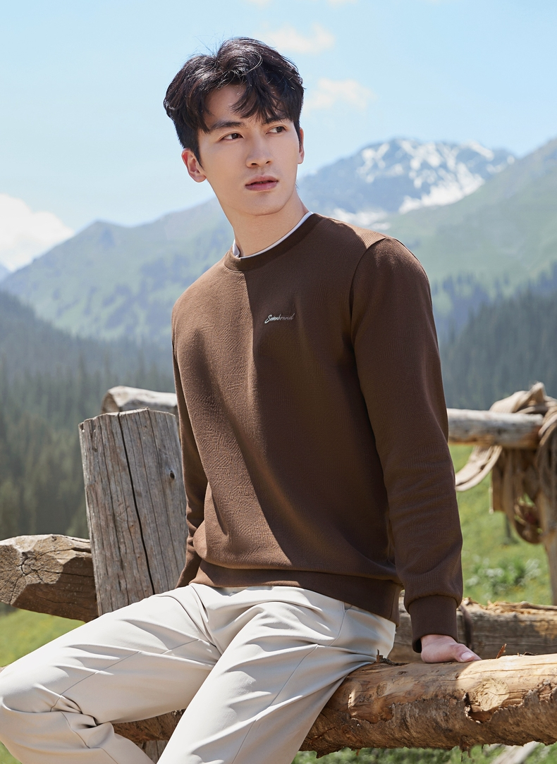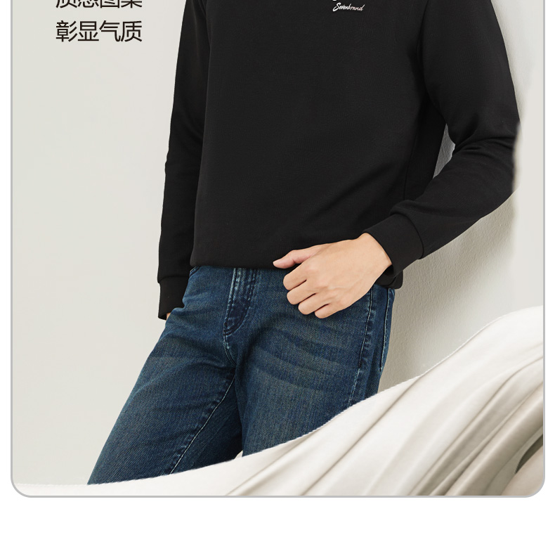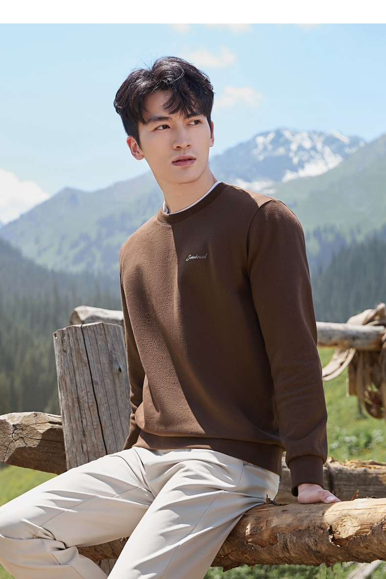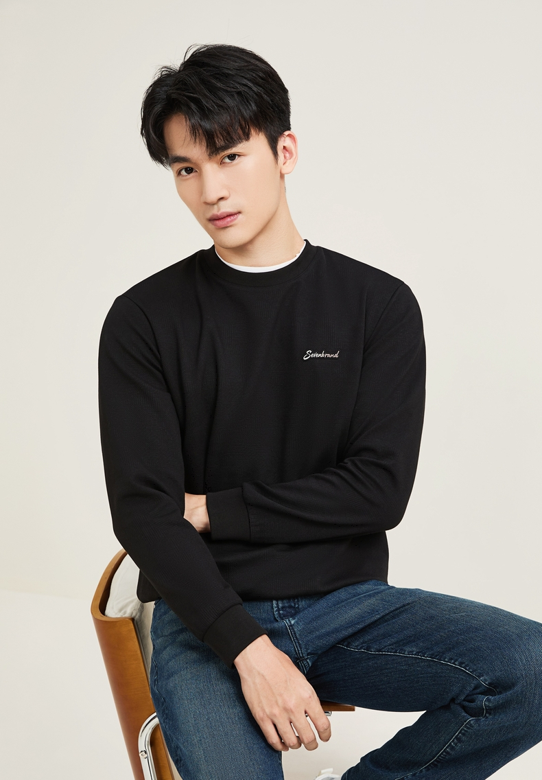 【提花肌理卫衣】柒牌男装长袖套头卫衣圆领提花休闲中青年上衣129W70390