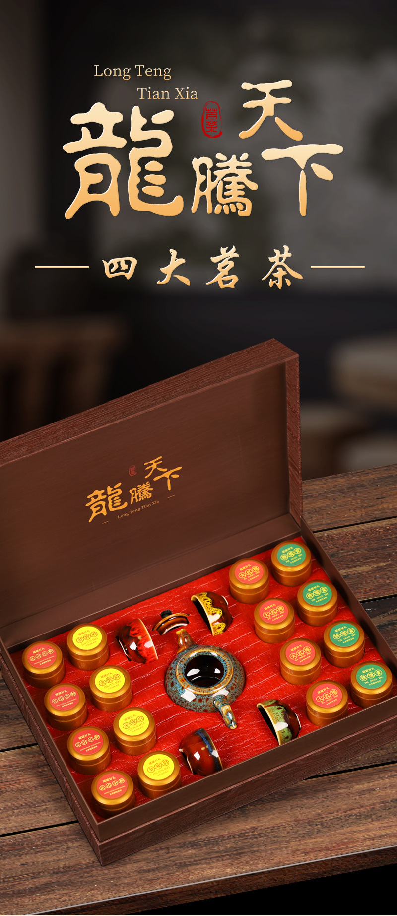 【赠精美茶具】高端茶叶礼盒!龙腾天下四大茗茶 独立小罐分装,存取方便,中秋送礼 红茶小种金骏眉乌龙茶小罐装高端茶叶礼盒装送礼