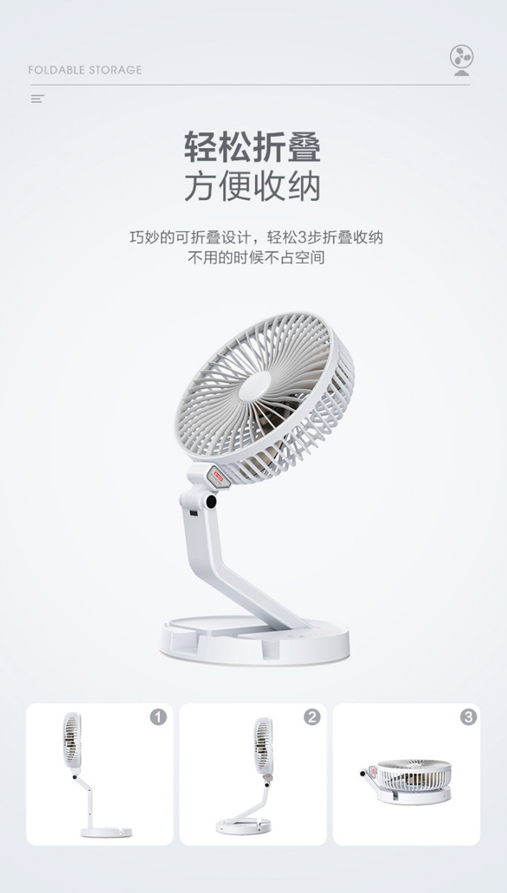 【7寸挂壁台式风扇+台灯】新款折叠风扇usb充电伸缩台灯风扇七寸静音大风扇