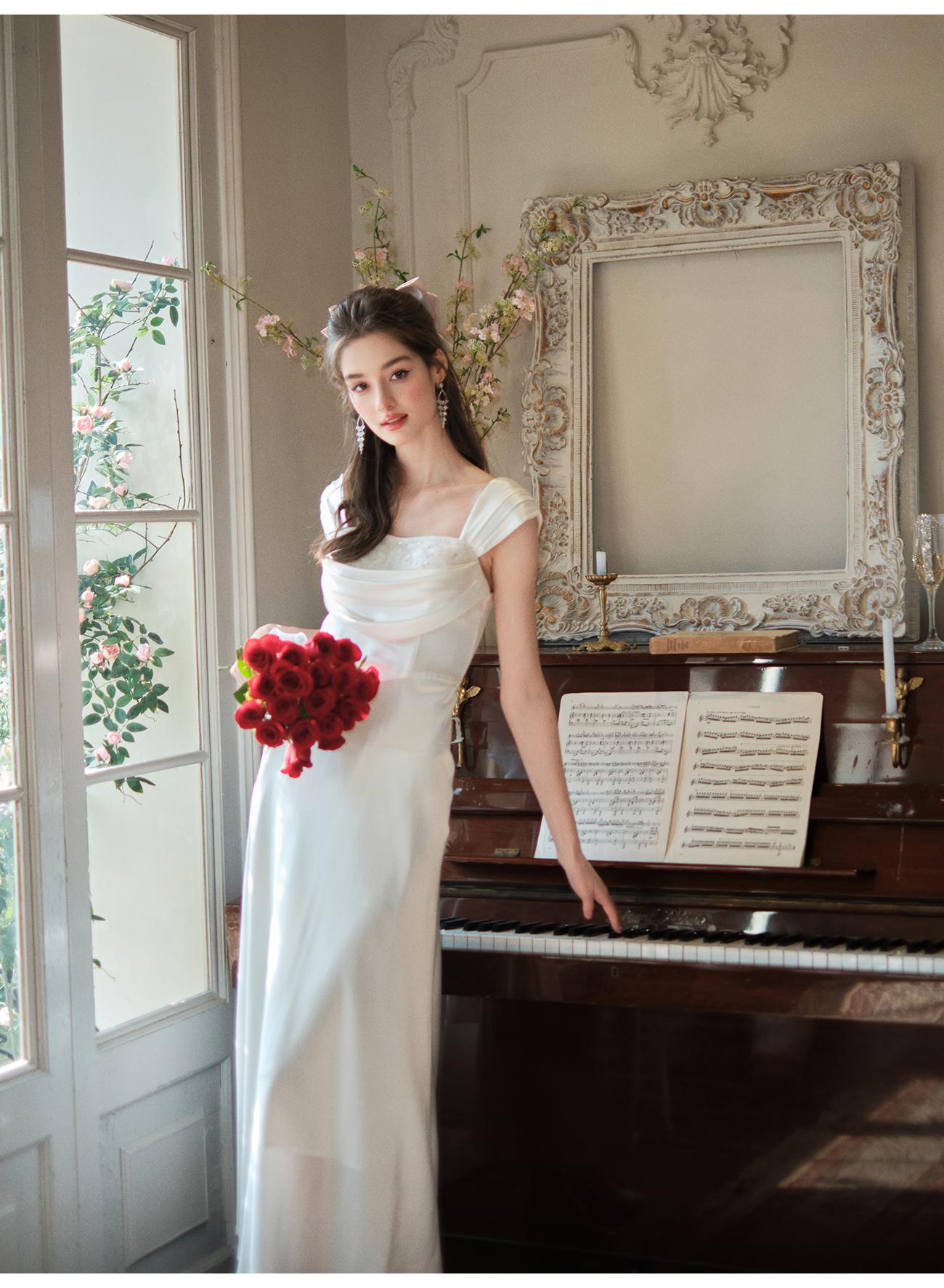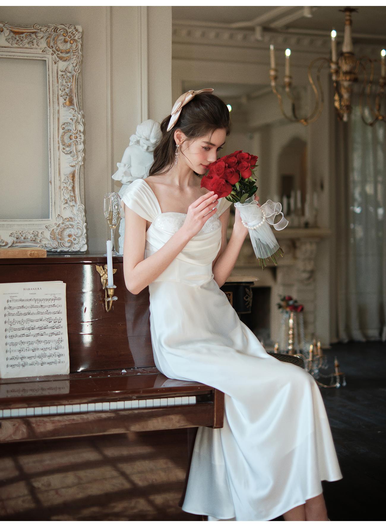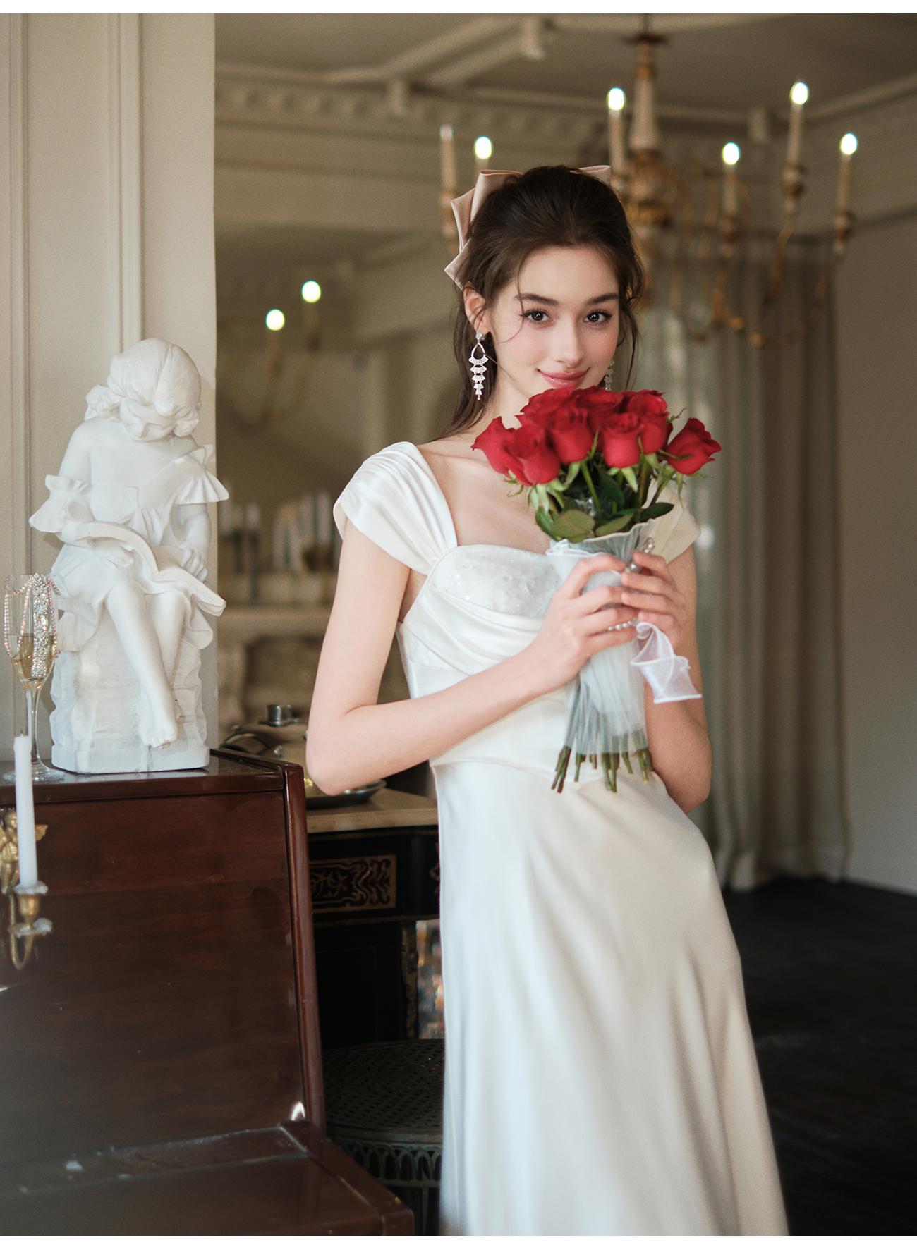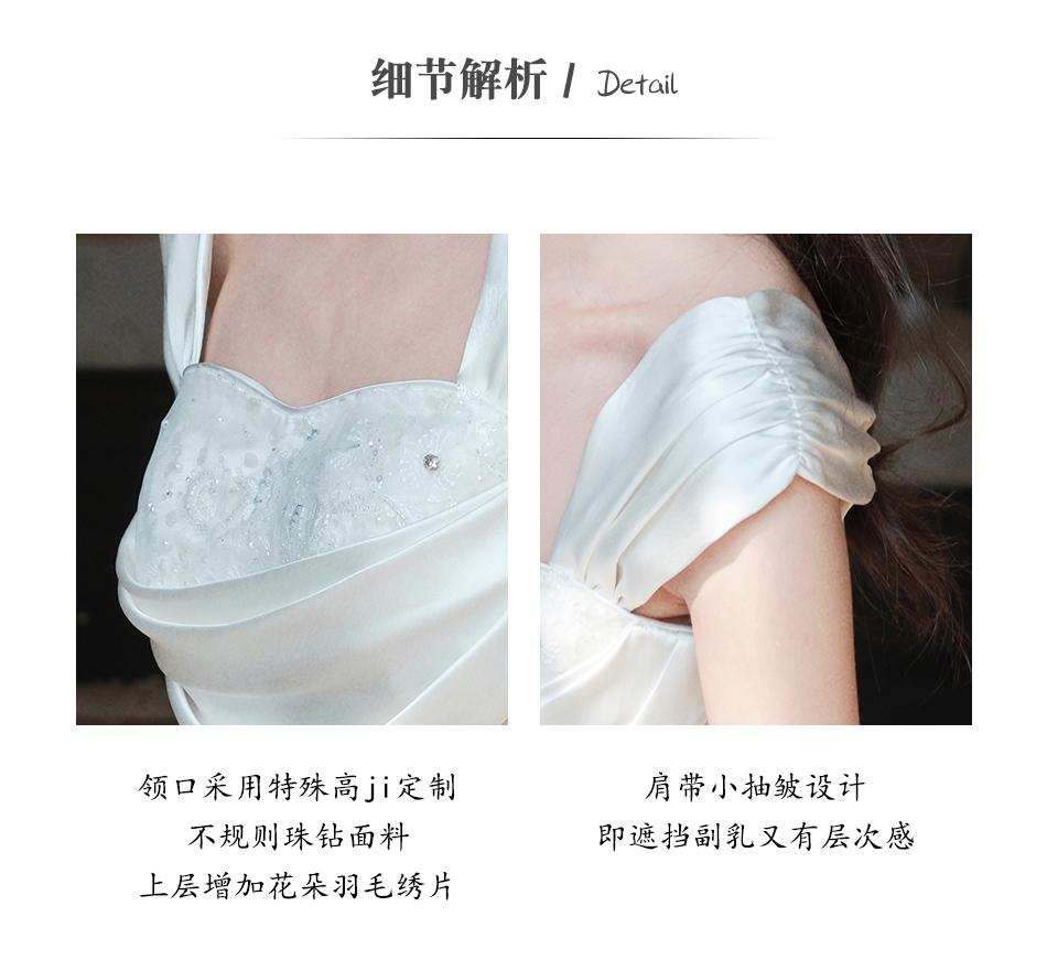 BeQueenStory【白玉水仙】设计感光泽飘逸优雅法式醋酸钉珠连衣裙