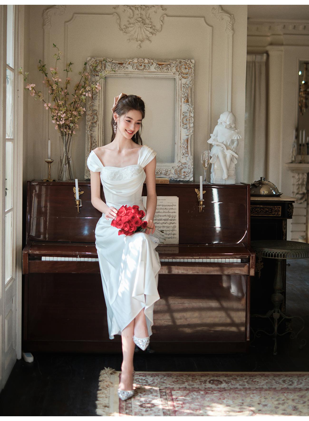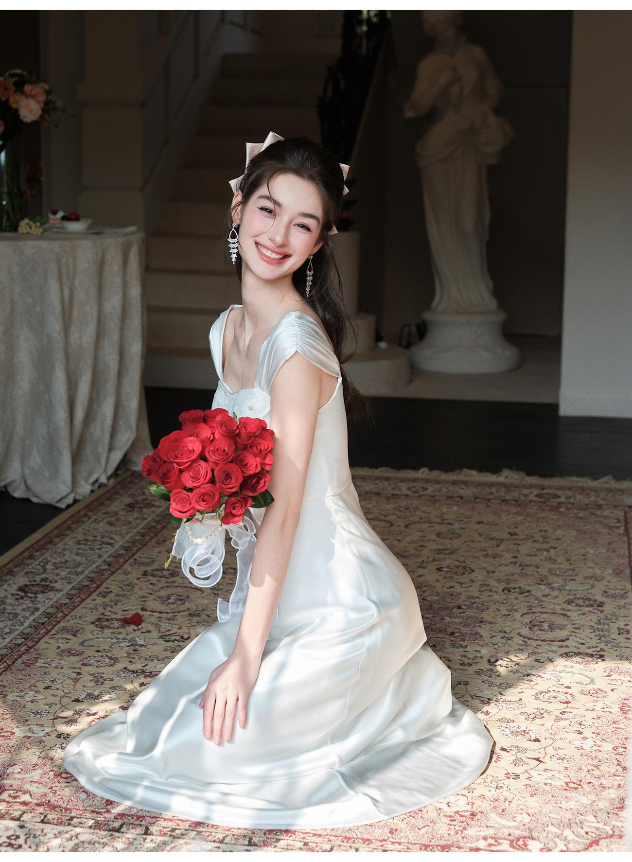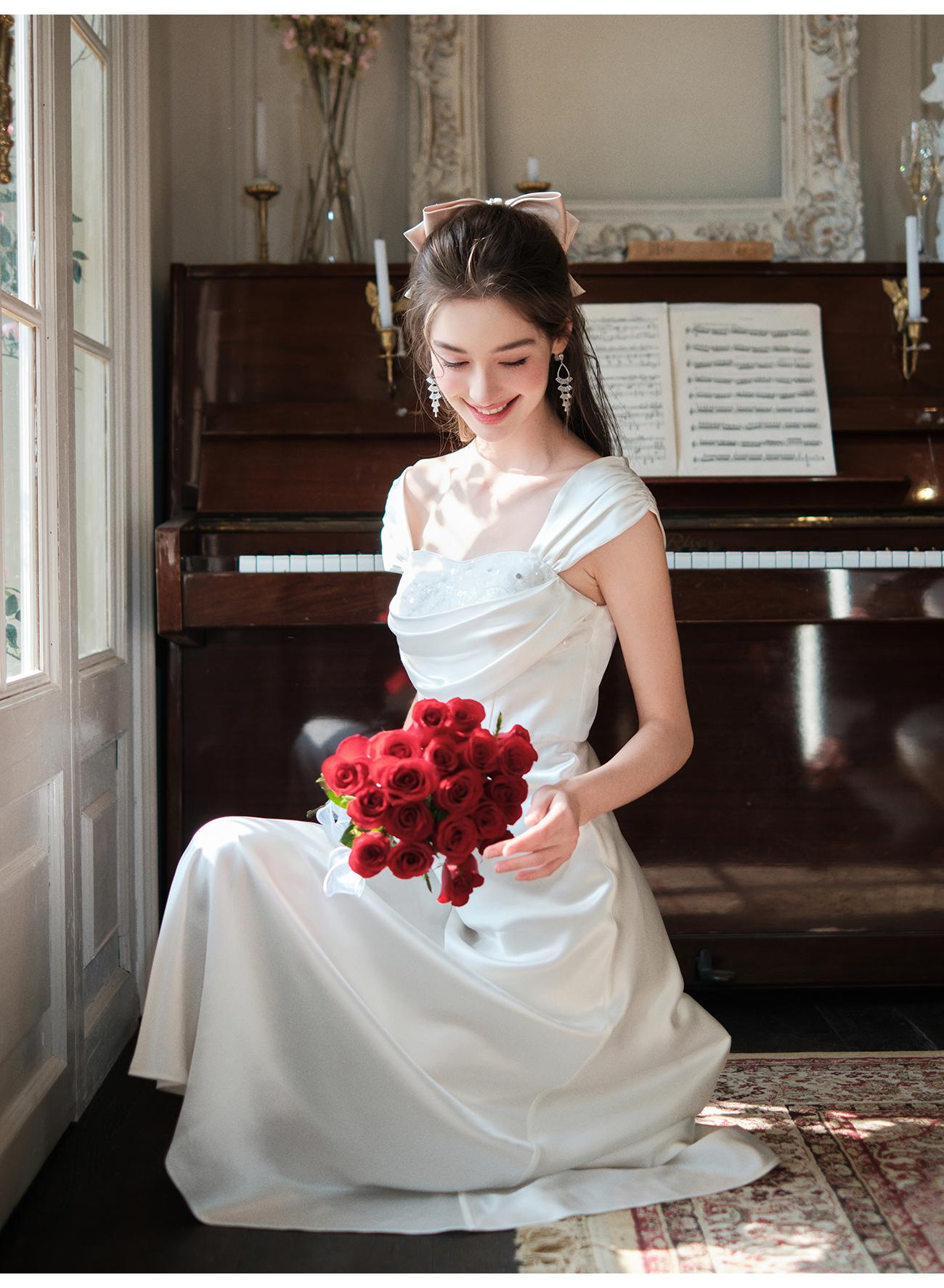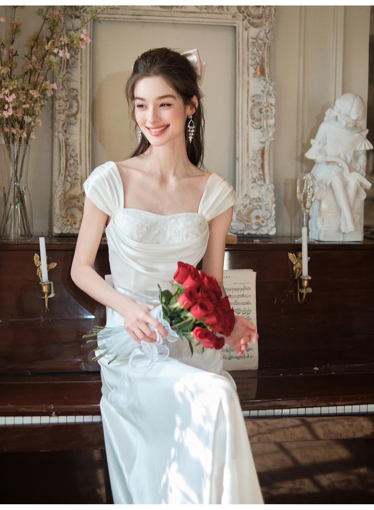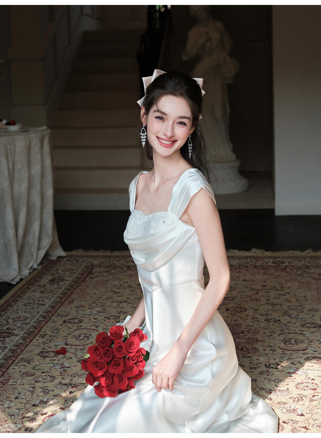BeQueenStory【白玉水仙】设计感光泽飘逸优雅法式醋酸钉珠连衣裙
