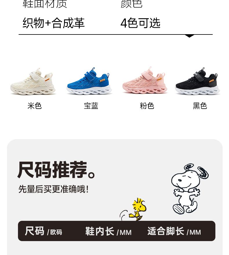 SNOOPY史努比童鞋儿童运动鞋夏季新款男女童网面透气耐磨缓震休闲跑步鞋26-38