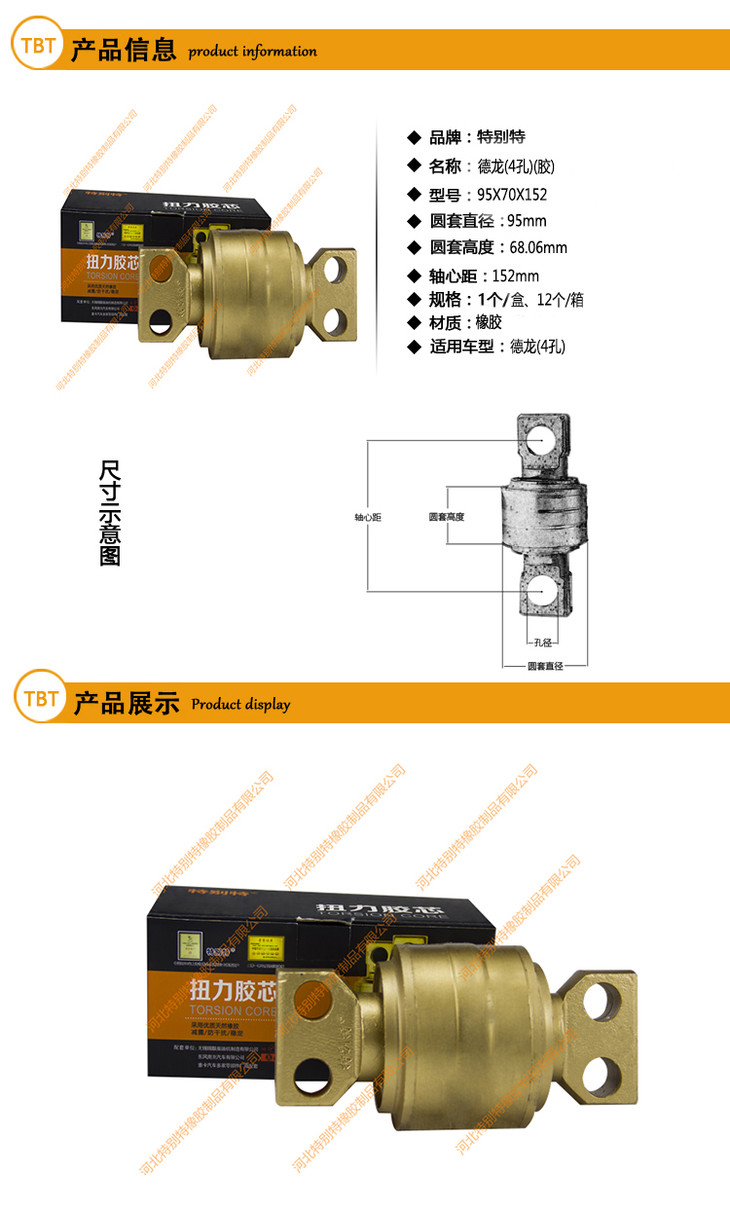 | 德龙扭力胶芯(4孔)95*70*152(胶)(孔19)(高68.06)(单价=1个,12个=1箱)/德龙拉臂套/德龙拉力套95x70x152(9570152) |
