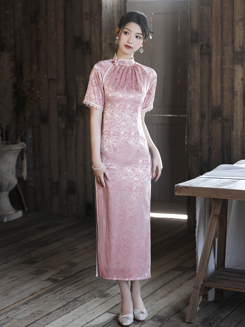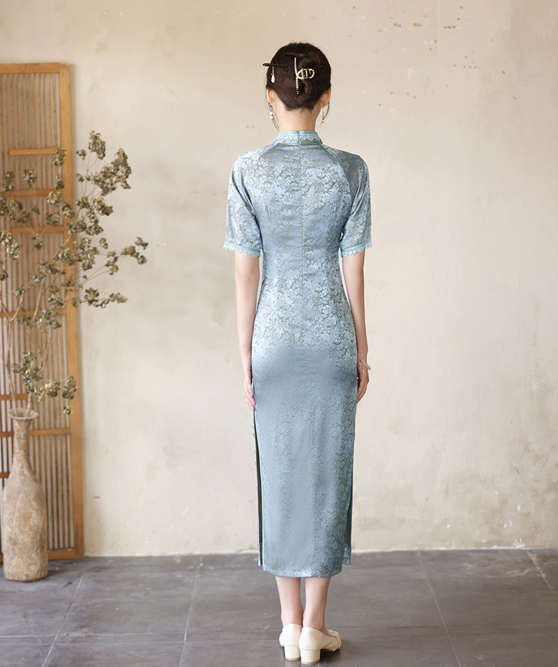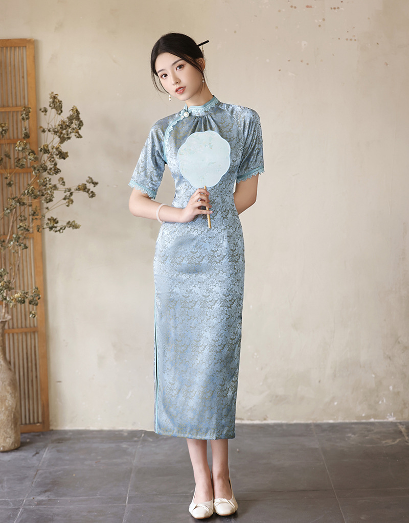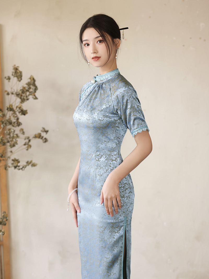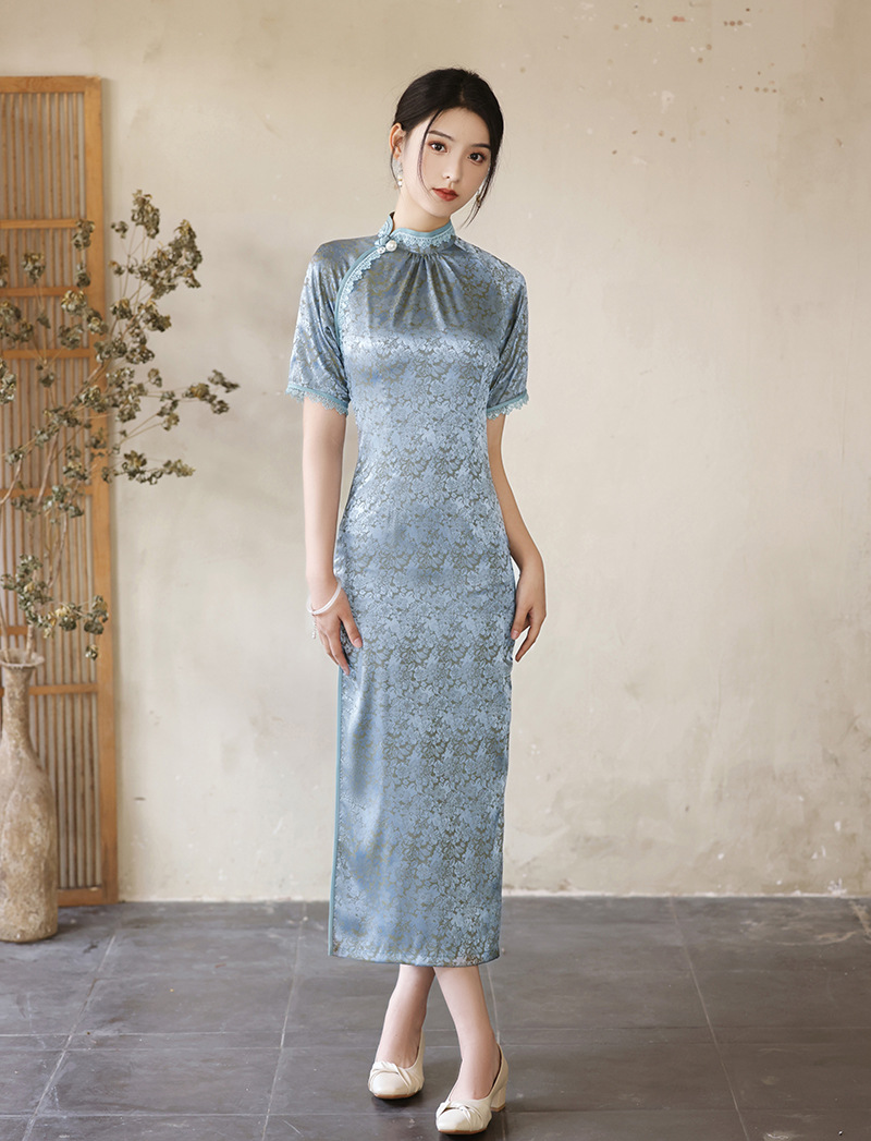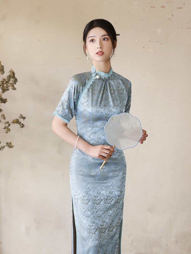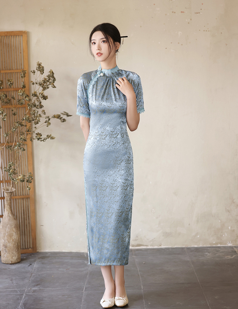 优雅修身,春夏新款旗袍改良旗袍长款复古走秀旗袍XL-23076
