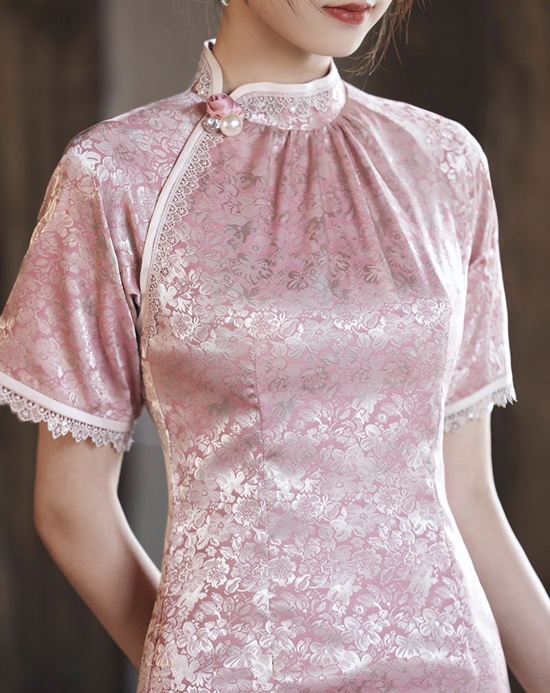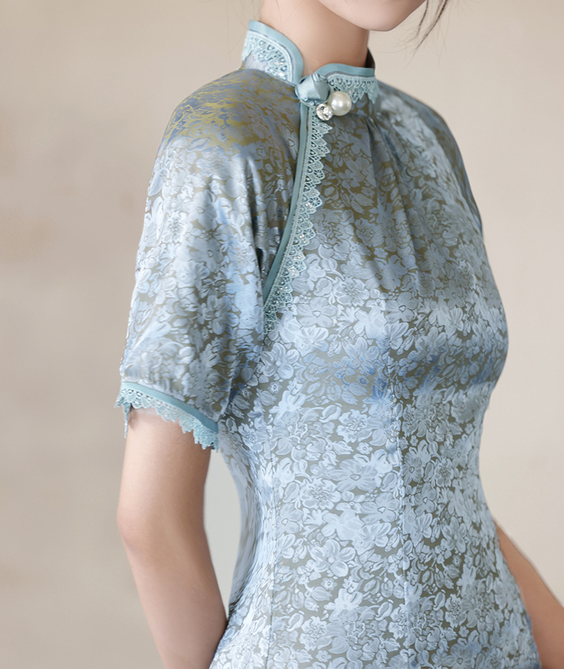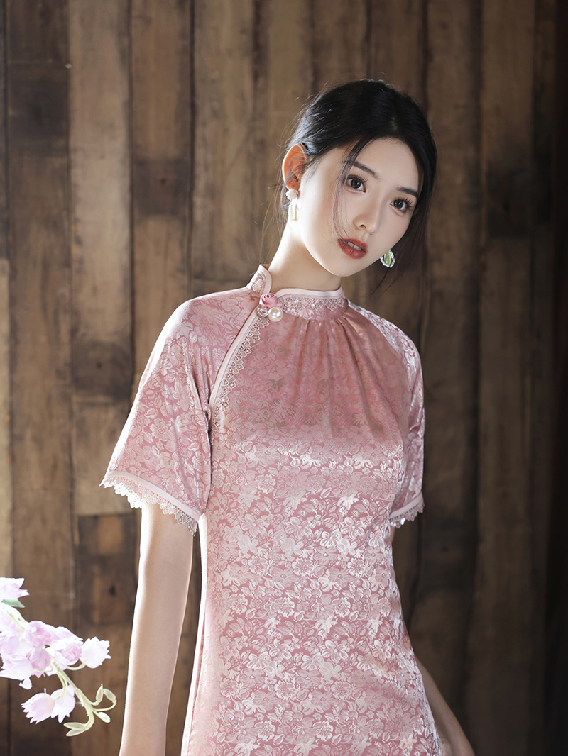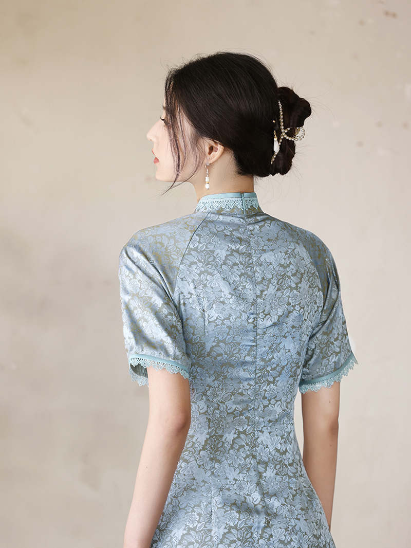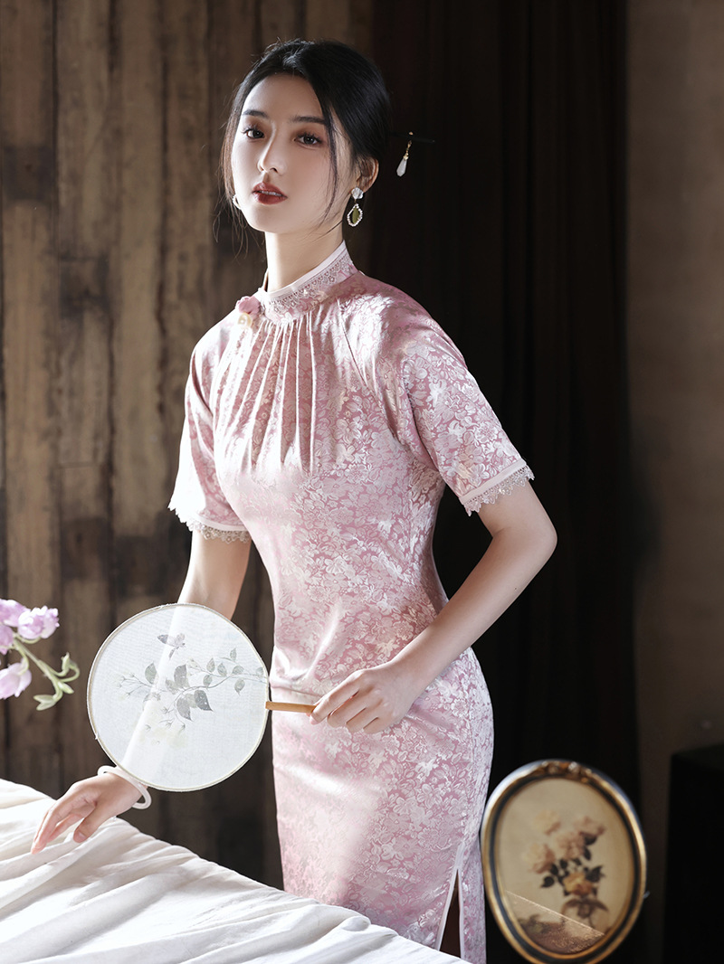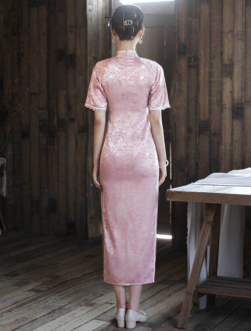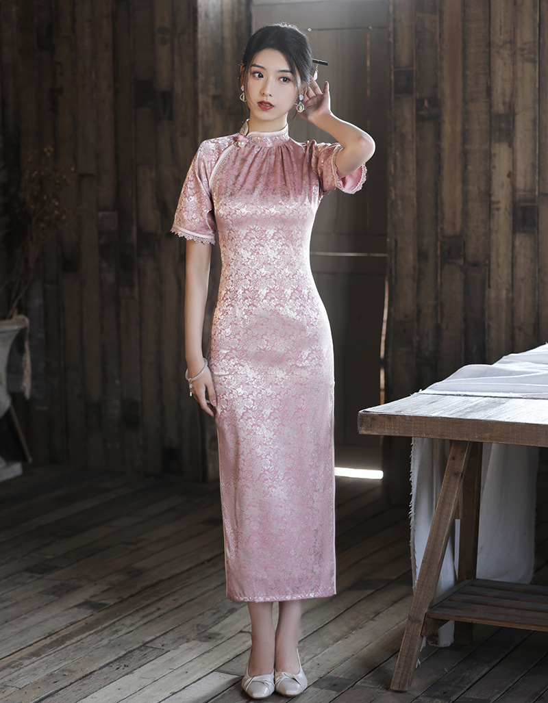 优雅修身,春夏新款旗袍改良旗袍长款复古走秀旗袍XL-23076