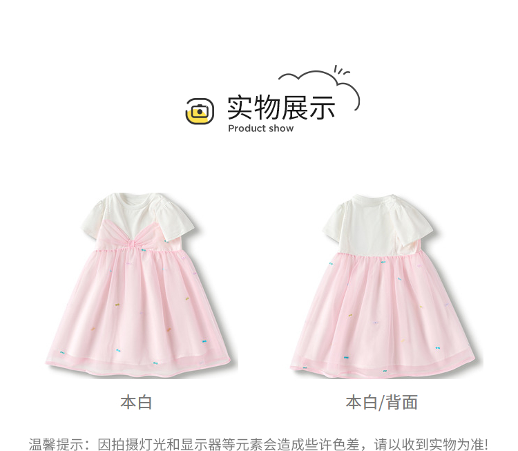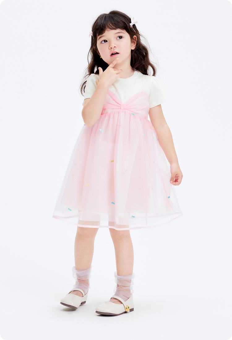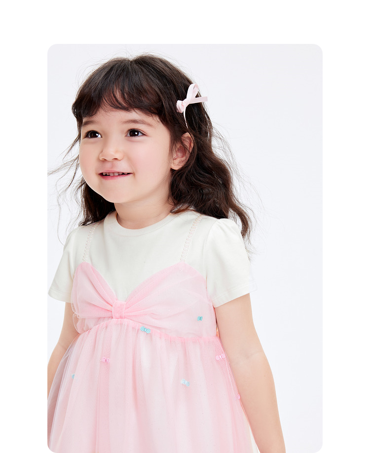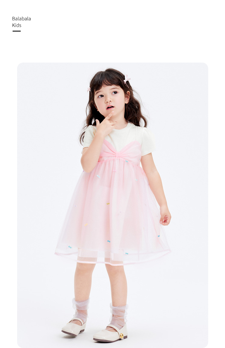 巴拉巴拉儿童裙子夏季女童连衣裙假两件网纱裙小童洋气甜美蝴蝶结
