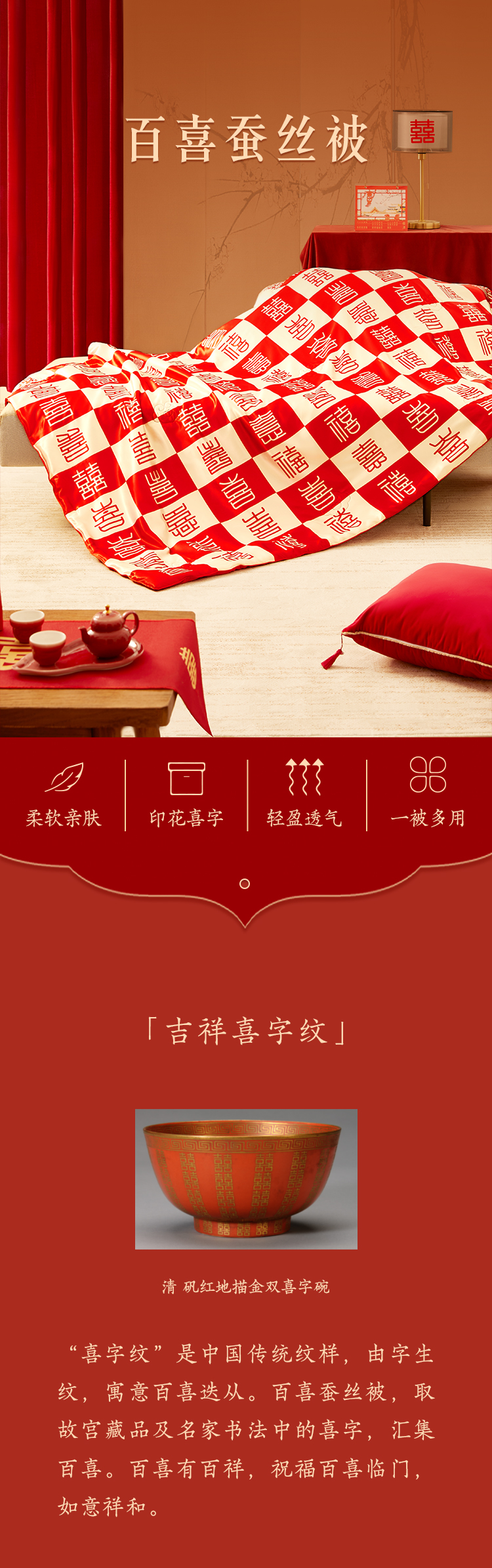 【故宫家居】百喜毯蚕丝被博物馆文创新婚结婚订婚礼物送新人新娘