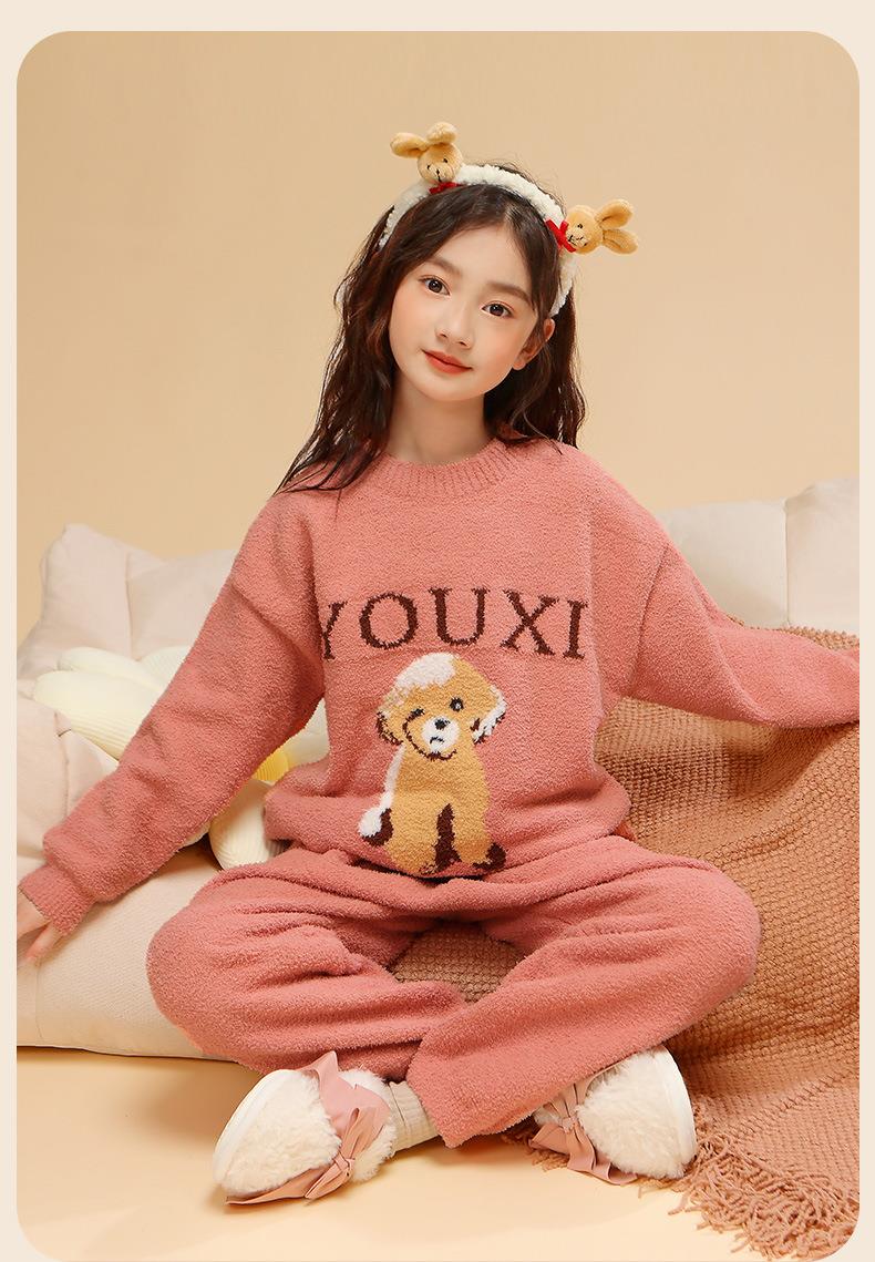 舒适珊瑚睡衣儿童女孩睡裤加絨加厚保暖两件套童家居套装可爱宽松