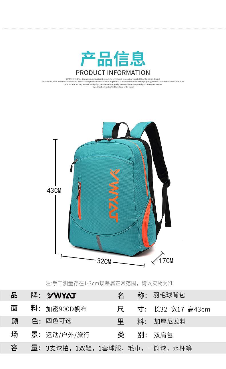 YWYAT/威亚拓新款儿童羽毛球包双肩背包3支装男女大容量多功能青少年运动书包