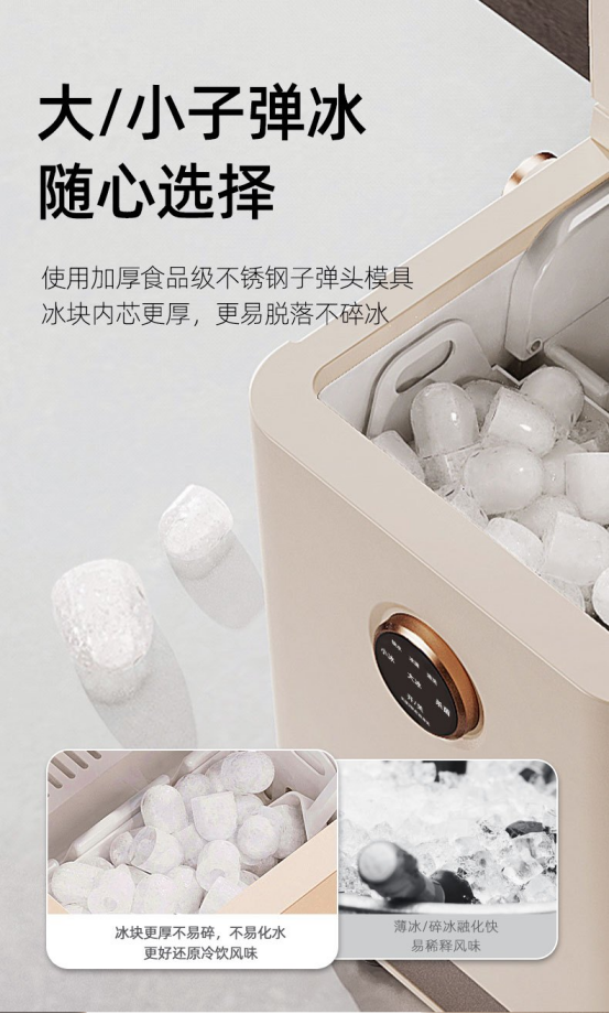 ✔液晶显示屏,全智能操作系统,轻触按键即可开始使用; ✔可视制冰,看得见的制冰过程,让消费者更放心。
