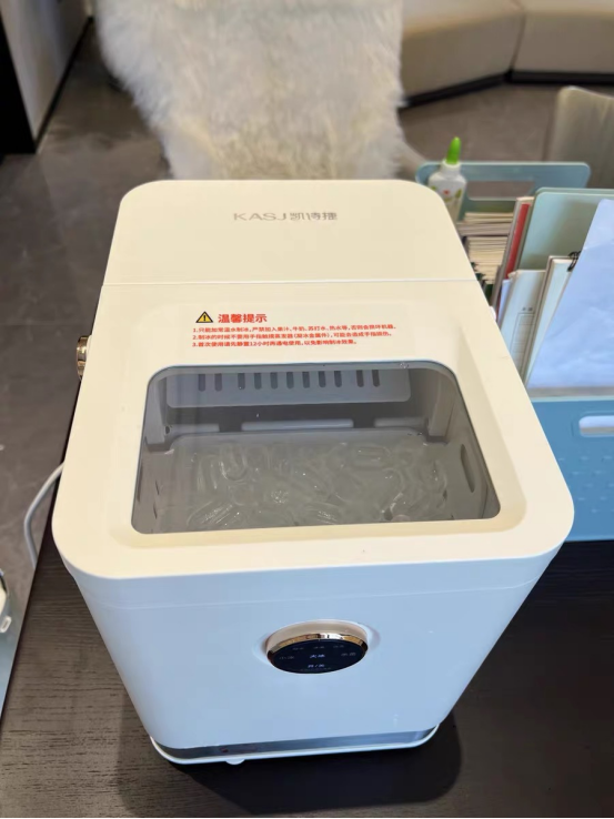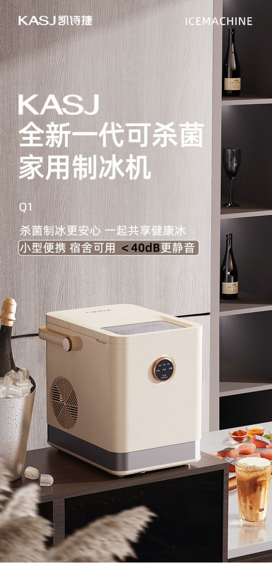 炎炎夏日,是谁点外卖,所有饮料🥤都备注:加冰!加冰!加冰! 在夏天,不加冰的饮料不值得一喝!喝不到冰,夏天心情还怎么美丽~ 但是,用冰格制冰需要提前一天放进冰箱,大量需要冰块的时候就需要买很多冰格,冰箱都放不下了不说,还担心会不会串味。 冻好之后撬冰块也是一个技术活……大写的难搞! 有了「KASJ凯诗捷Q1制冰机」,冰块🧊说有就有,分分钟实现冰块自由! 6-9分钟就可以快速出好冰,冰块大小还可以随心选择,小巧便携,随意移动,家用办公、户外野营⛺️都可!