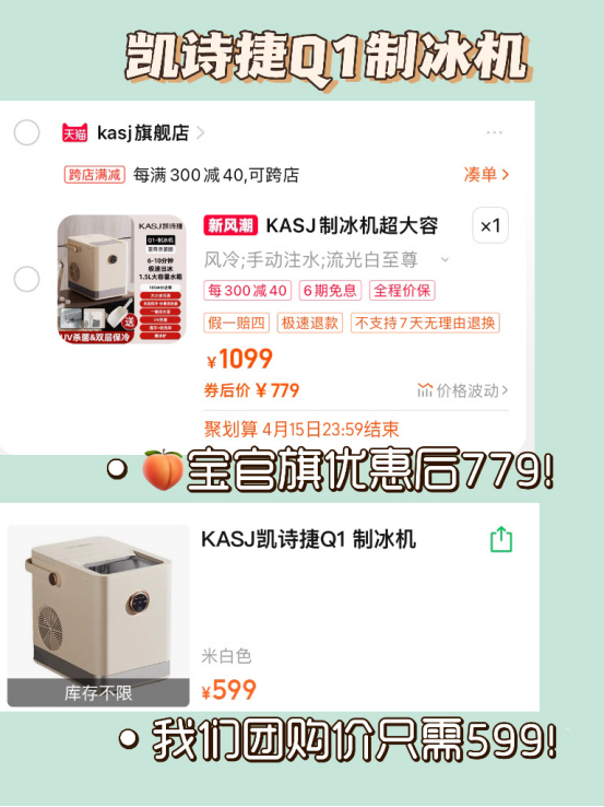 🧊团购价超划算 某宝旗舰店在售券后价779,今日团购价只需💰599❗️ 便宜了近200呀,赶在炎炎夏日到达之前,制冰机提前拿下!