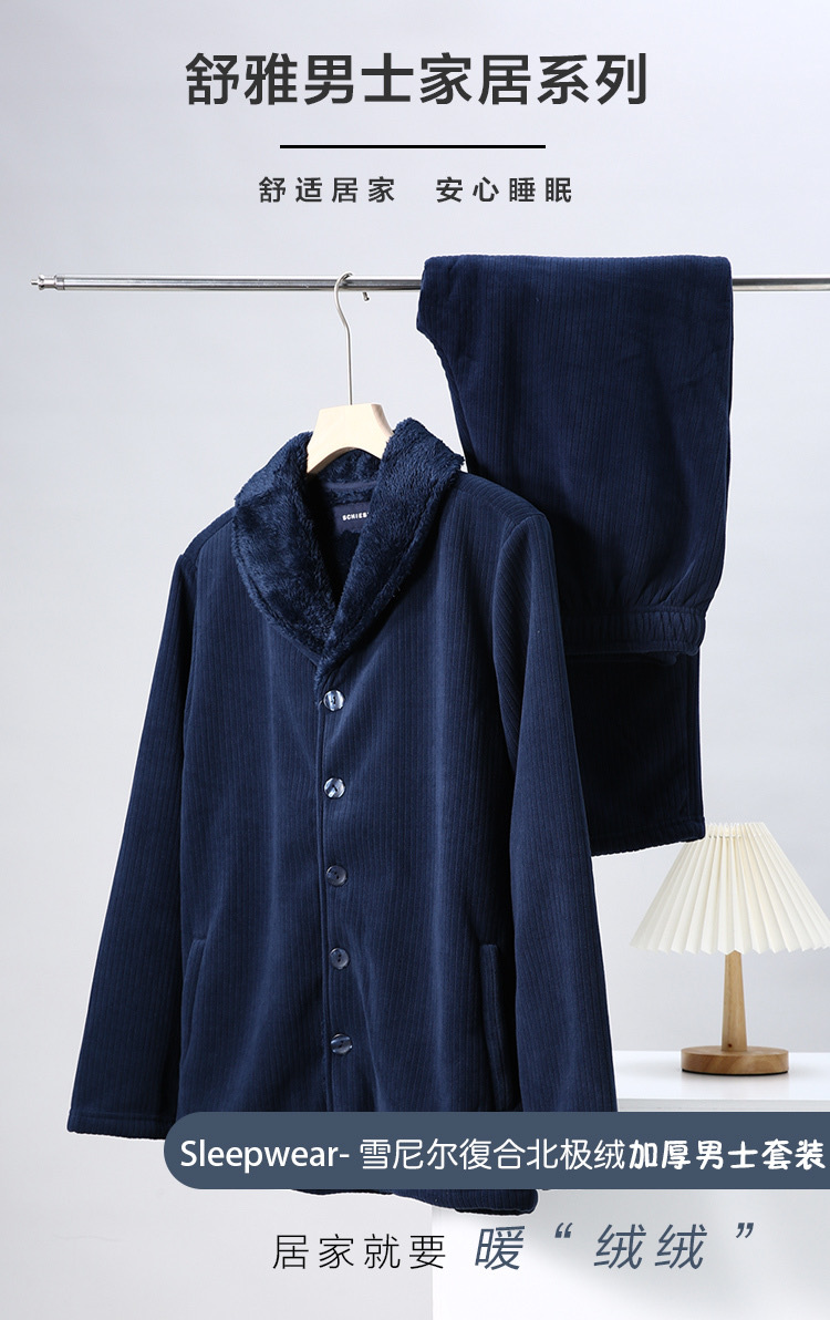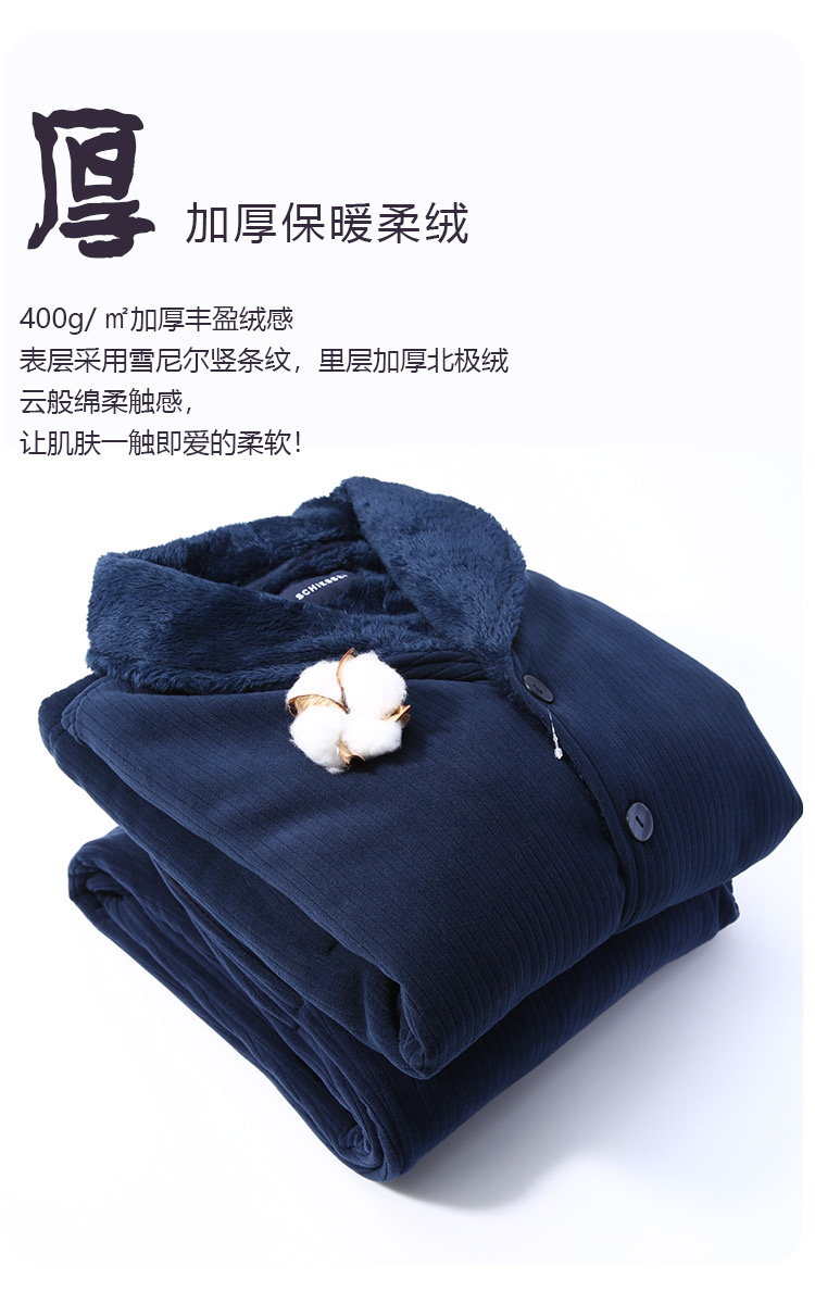【复合绒 青果领】SCHIESSER德国舒雅青果领开衫复合绒男士家居套装39/23673H