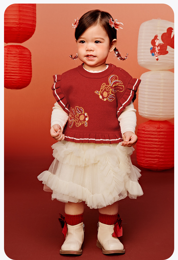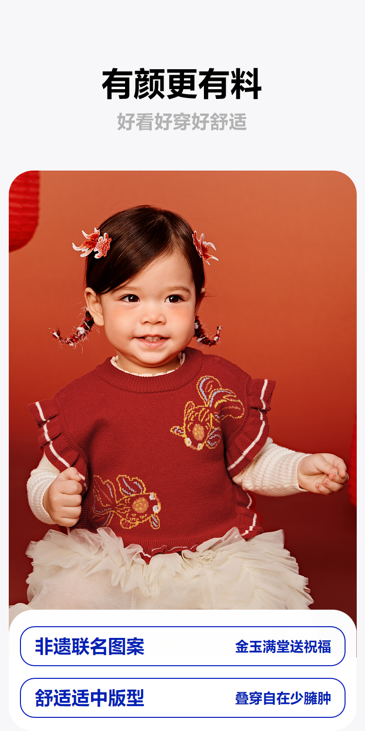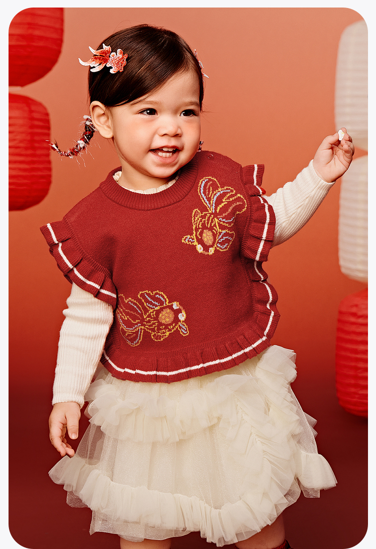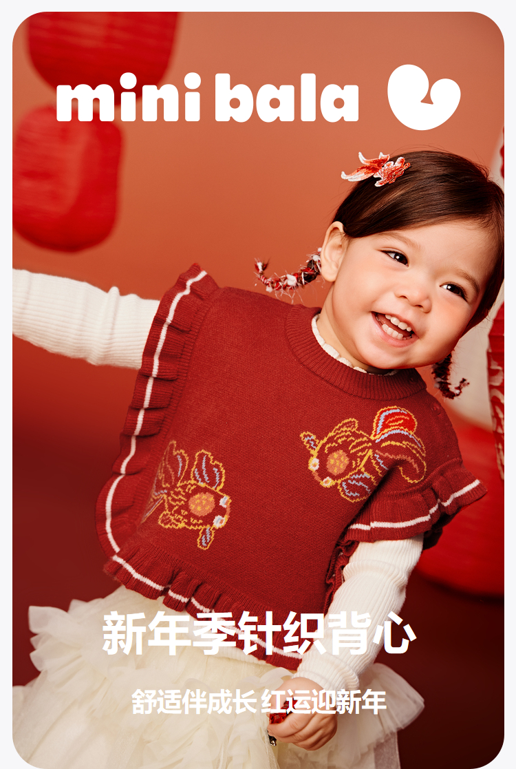 【新年非遗联名】迷你巴拉女童背心2025春新新品针织马甲拜年服