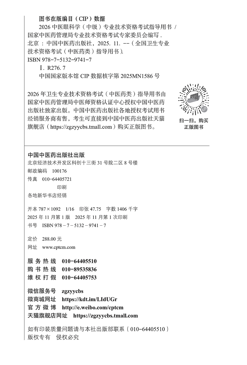 【出版社直发】 2026中医眼科学(中级)专业技术资格考试指导用书 专业代码335附赠考试大纲 中国中医药出版社9787513297417