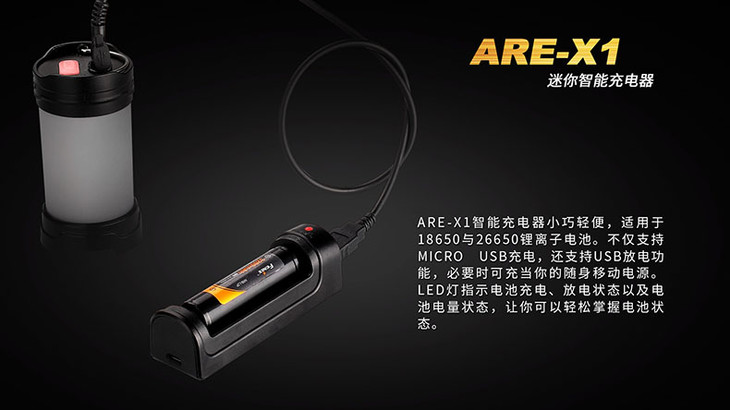 FENIX ARE-X1 18650/26650锂电池USB充放电器 强光手电筒充电器