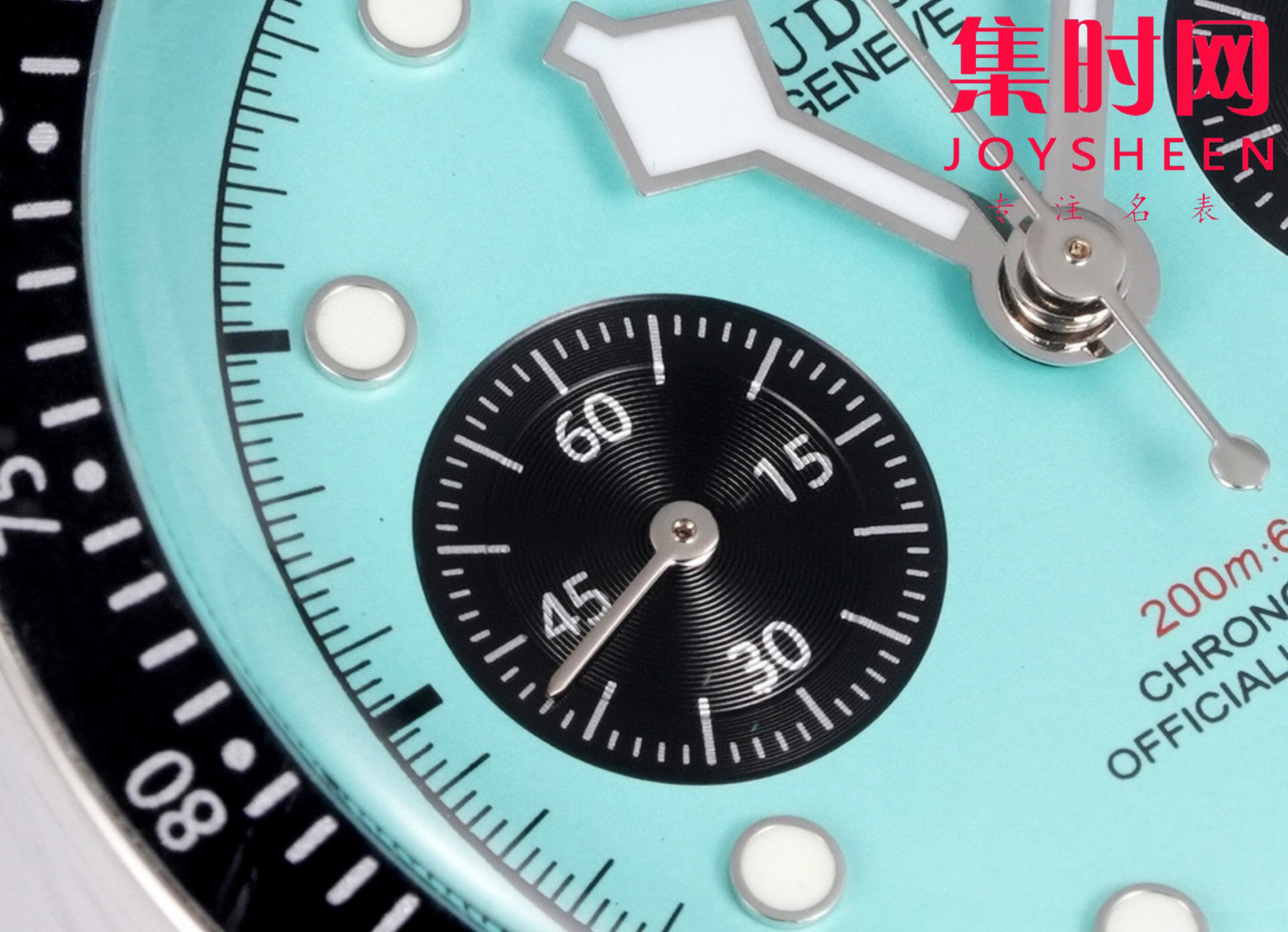 - 测速外圈:配备哑光黑色阳极氧化铝测速计字圈,适合赛车计时功能。