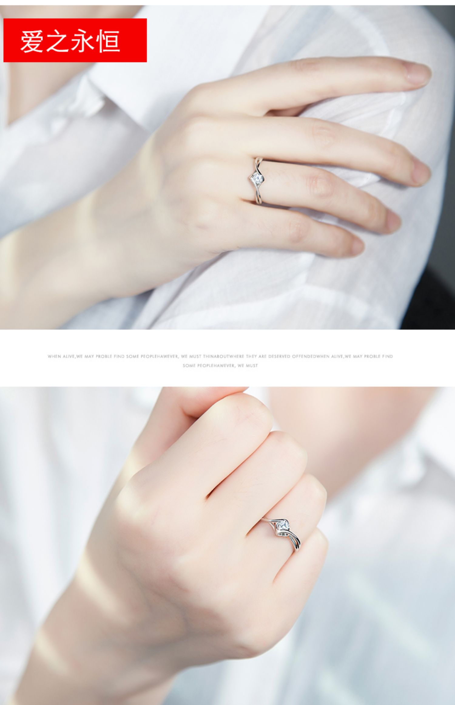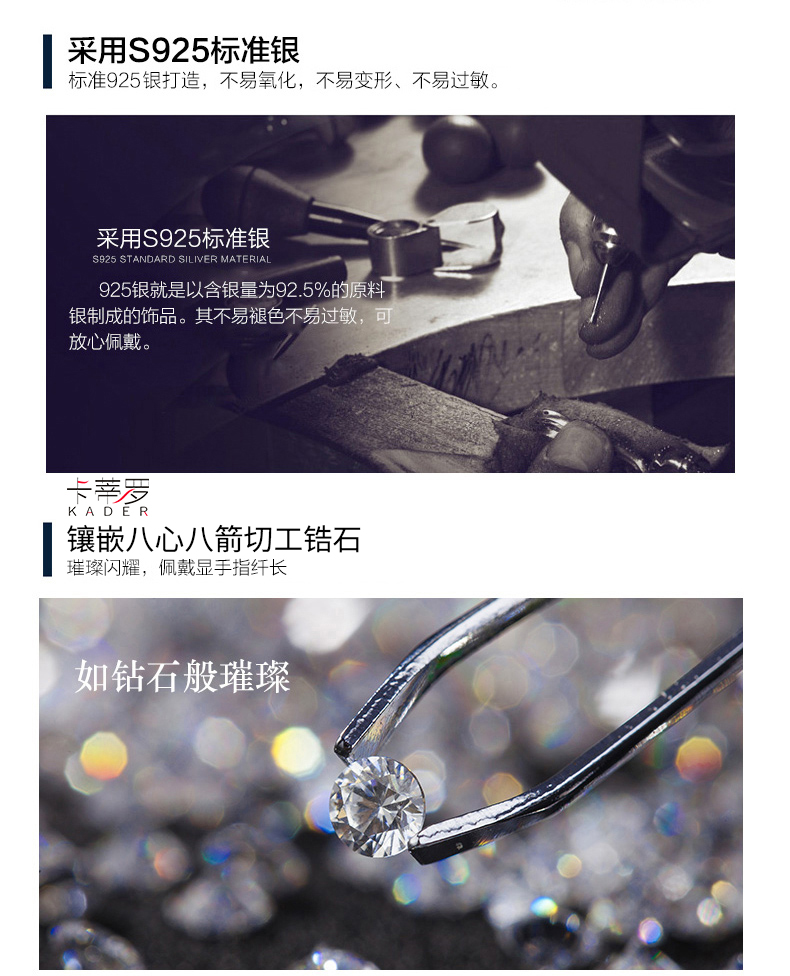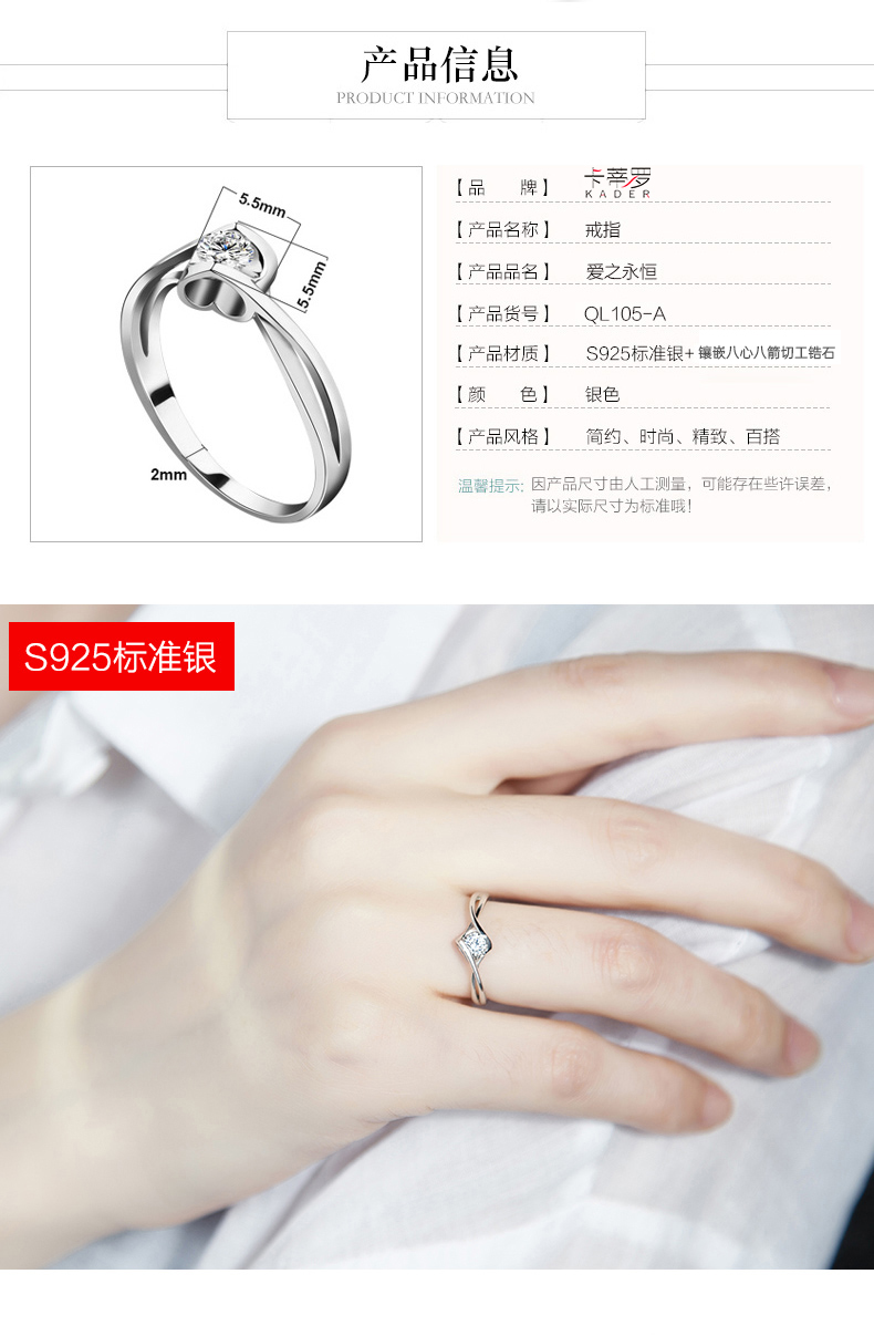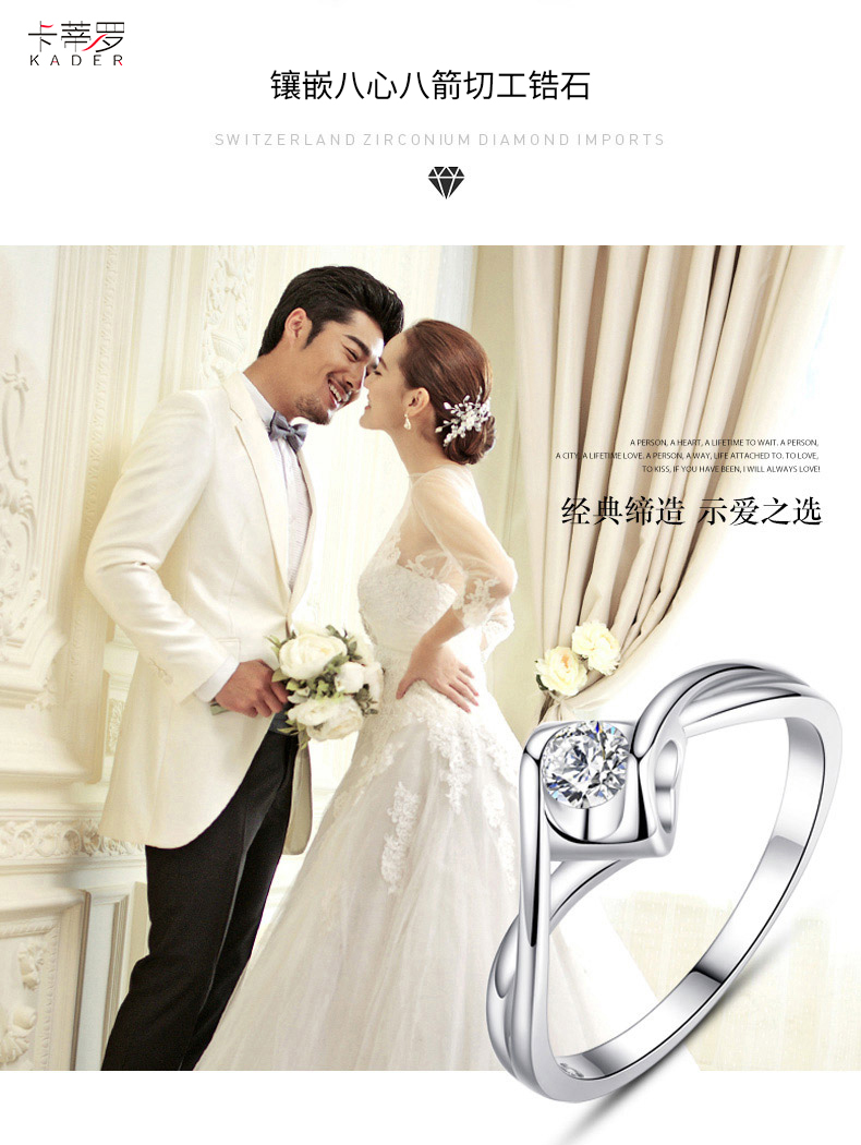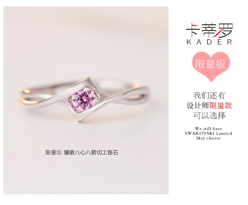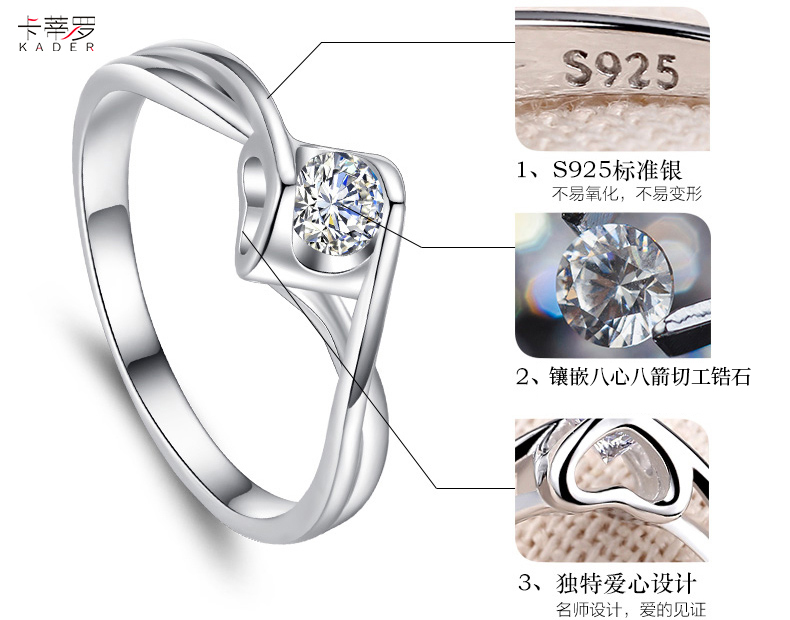 KADER卡蒂罗爱之永恒 纯银戒指女求婚钻戒时尚感轻奢小众送女友纪念礼物2021新款