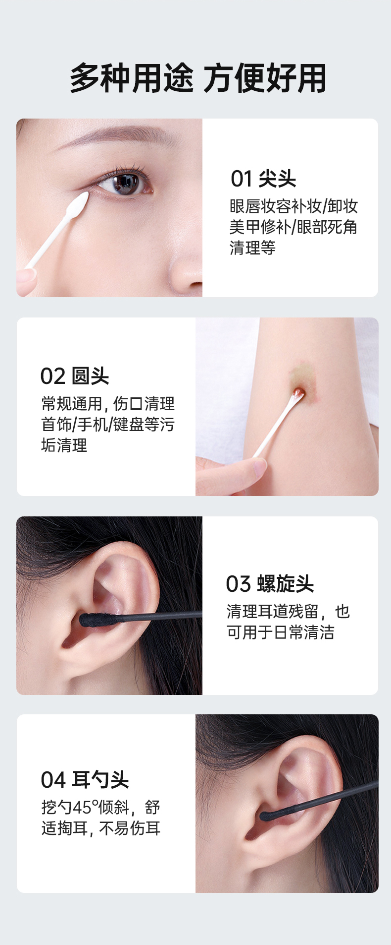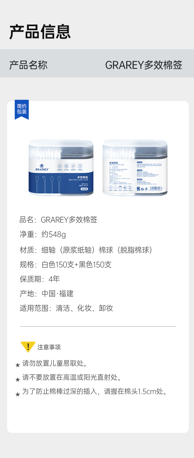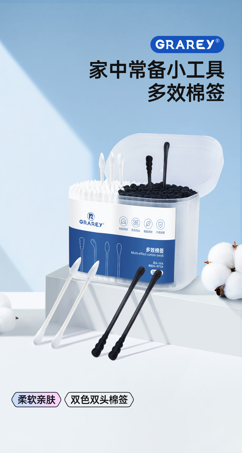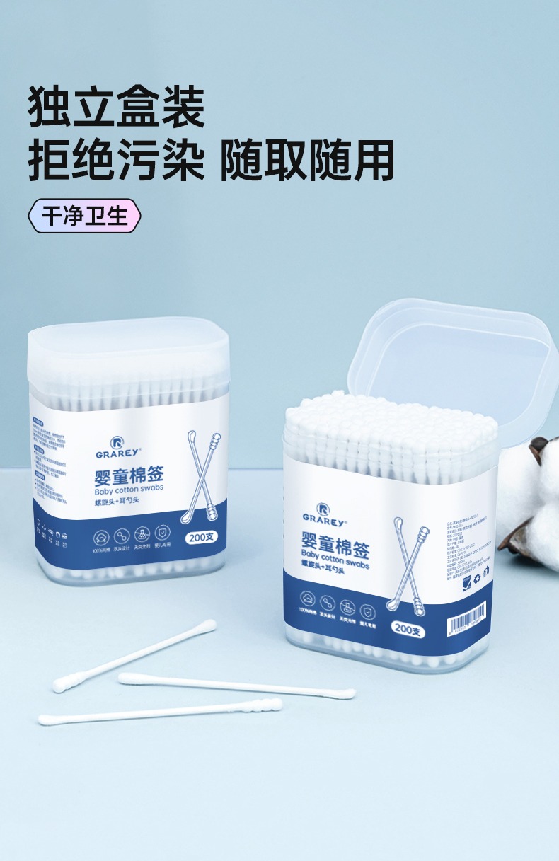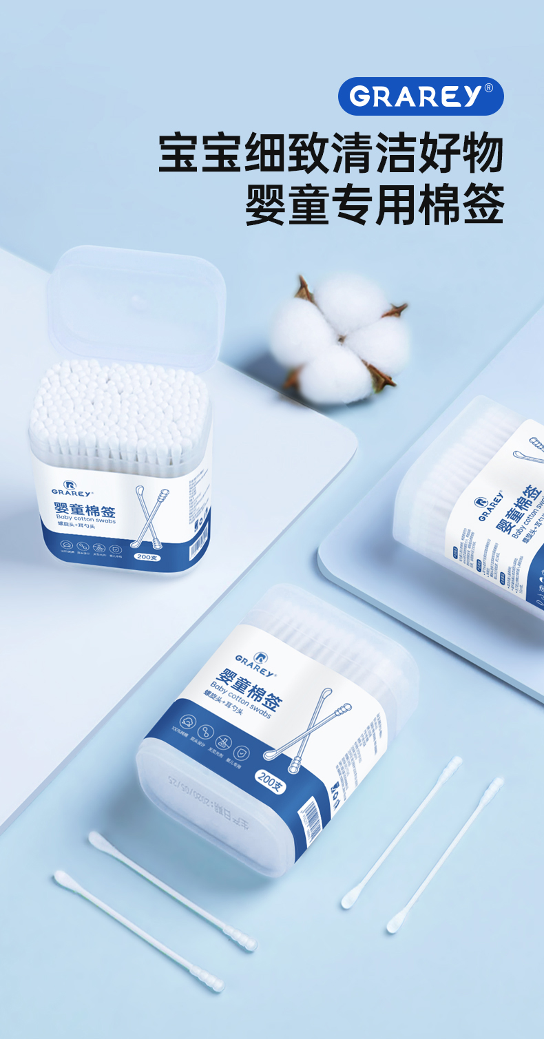 GRAREY 多效棉签和婴童棉签 婴儿 宝宝专用棉签 耳勺棉签 掏耳朵化妆专用棉签