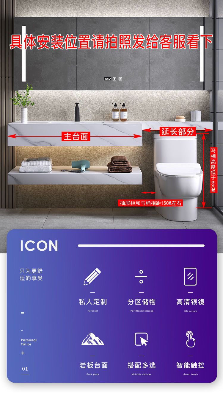 洗脸卫生间家用台洗簌台洗脸盆浴室柜轻奢岩款组合板延长