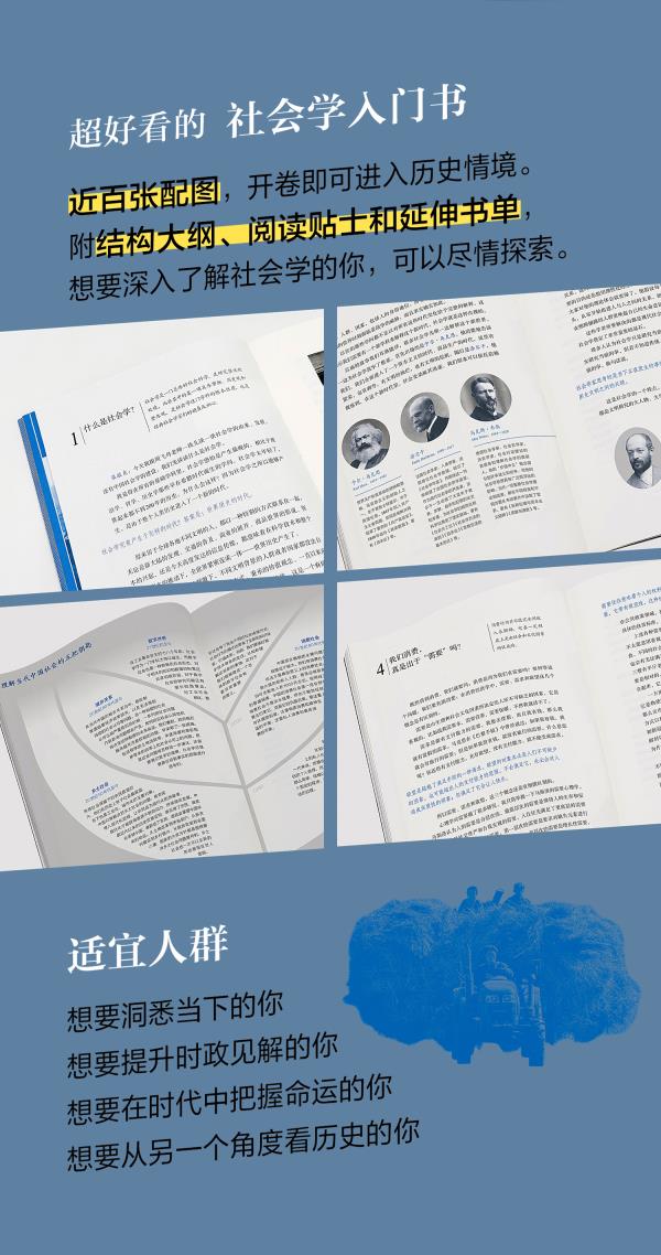【编辑推荐】 社会学在中国经历本土化,至今已百年有余。一个舶来的学科如何在中国语境中找到自己的范式,人们又是如何用社会学的眼光和思维方式来理解中国的现实问题,这正是本书思考与关切的重要议题。在中国社会学百年这样一个大节点之下,我们更有必要对社会学在中国的生根与枝繁叶茂进行一番回溯与梳理。 本书邀请了十位社会学界的权威学者,讲述中国社会学的历史源流和当代中国最为关注的社会学问题。全书紧扣“中国社会学”的关键词,前五讲关注中国社会学发展历程中的五位重要人物,包括吴文藻、费孝通、林耀华、瞿同祖、李安宅,不仅深挖他们的学术历程,还重点就其代表作进行细致解读。每篇单独是一位学者的传记,合起来又是中国社会学的发展历程。后五讲关注改革开放以来中国社会最为突出的几个问题,包括农村、城乡、家庭、消费和数字时代,作者讲述了这些命题的学术源流以及在中国社会中的突出表现,特别强调了近年的研究取径和学术成果。 从这里出发,关注当下和现实,穿透表象的迷雾,在前人的智慧的基础上自由探索,洞察社会运行的基本结构。 【内容简介】 社会学是一门年轻的学科,却与当下联系最为紧密。身为社会中的一员,我们时刻渴望洞察所处的环境、定位自己的坐标。社会学给出了一套独特的看待问题和分析问题的视角,它持续地关注当下、聚焦现实,帮助我们思考自身、社会和更广大的世界。内卷、“996”、性别、阶层区隔……面对当下诸多热议话题的围困,人们迫切地渴望找到一剂解决生活困境的良方,而社会学的学科逻辑,正为我们提供了一种不一样的思辨方式与视角,用以审视这些问题背后的行为缘由与关系结构。 在中国社会学进入百年之际,国内知名学者渠敬东、周飞舟、王铭铭、田耕、陈波、徐勇、刘世定、吴小英、王宁、王天夫等,分别从中国社会学的发展和当下的热点问题入手,带领我们进入中国社会学的殿堂,用社会学的眼光看待时代变迁,穿透热点现象,看清系统运作的原理,也重新认识作为社会人的自己。 【作者简介】 渠敬东,北京大学社会学系教授、博士生导师,北京大学博雅特聘教授。著有《缺席与断裂:有关失范的社会学研究》《现代社会中的人性与教育》《组织变迁的社会过程》等书,主编《涂尔干文集》(共6卷)、《中国社会学经典导读》,并译有《社会分工论》《启蒙辩证法》《图腾制度》等。 周飞舟,北京大学社会学系教授、博士生导师。主要从事中央地方关系、地方政府行为与城镇化方面的研究,著有《制度变迁与农村工业化》《以利为利:财政关系与地方政府行为》《土地制度改革与转变发展方式》等书。 王铭铭,北京大学社会学系教授、博士生导师,主要研究领域包括城市仪式时空研究、乡村民族志、历史人类学、民族学、中国西方论、比较神话学、社会理论等。著有《西学“中国化”的历史困境》《心与物游》《中间圈:“藏彝走廊”与人类学的再构思》《帝国与地方世界》《人生史与人类学》《超越“新战国”:吴文藻、费孝通的中华民族理论》《超社会体系:文明与中国》《刺桐城——滨海中国的地方与世界》等。