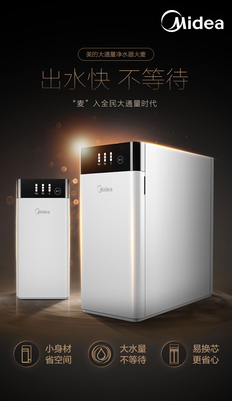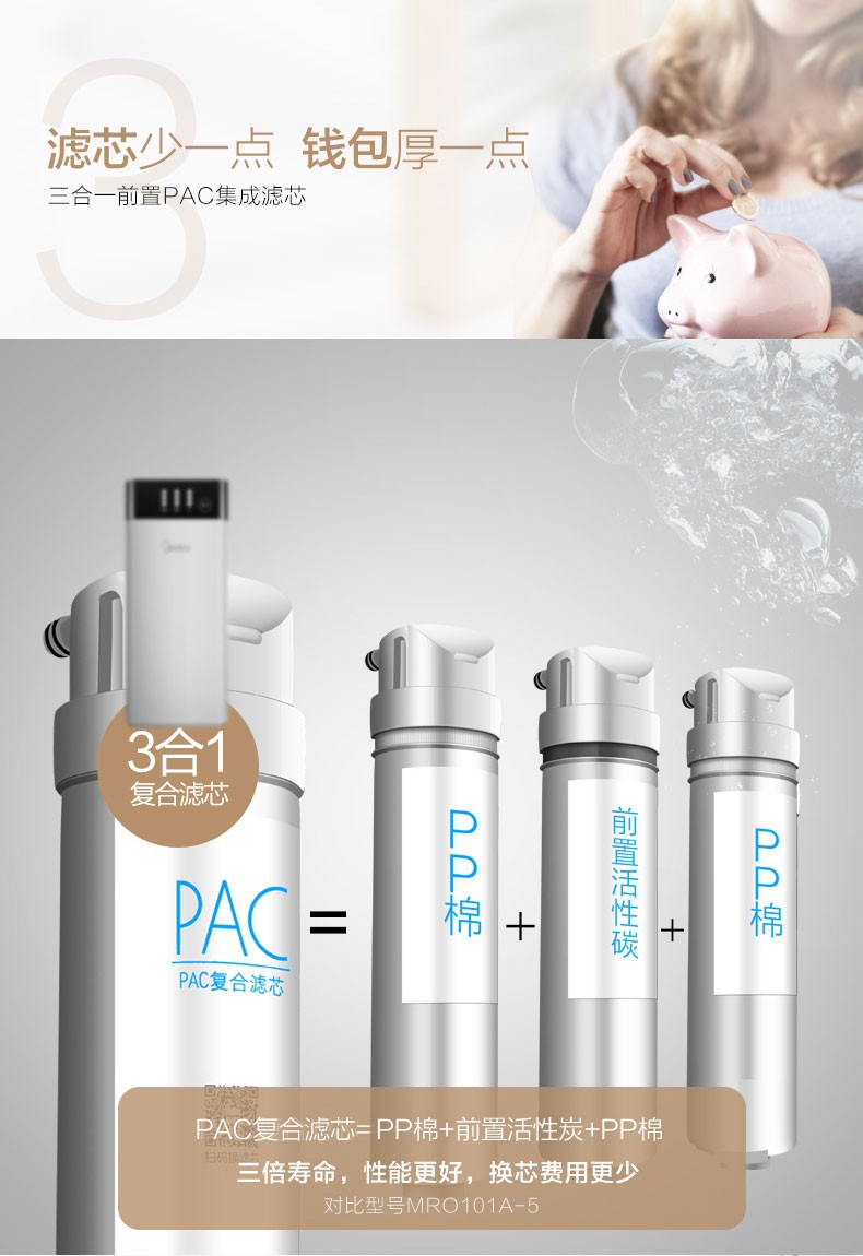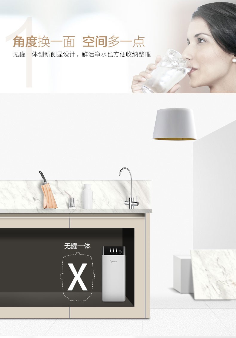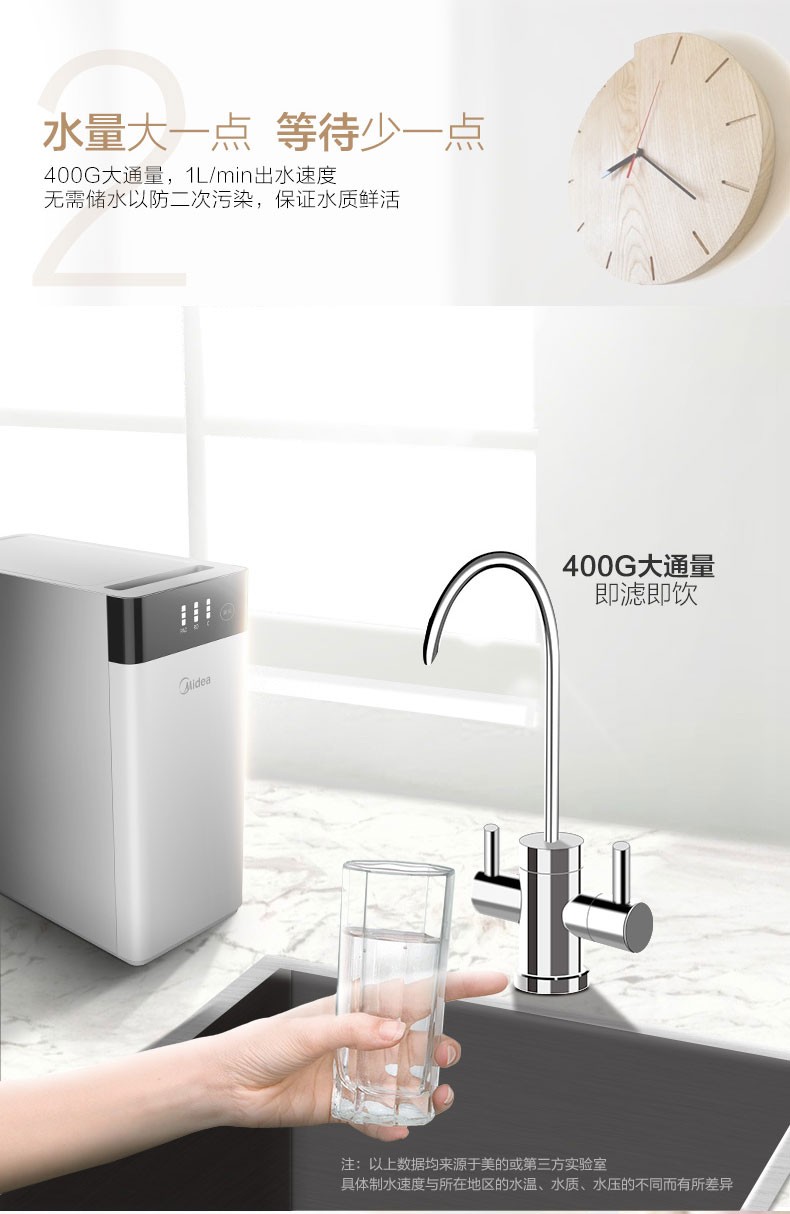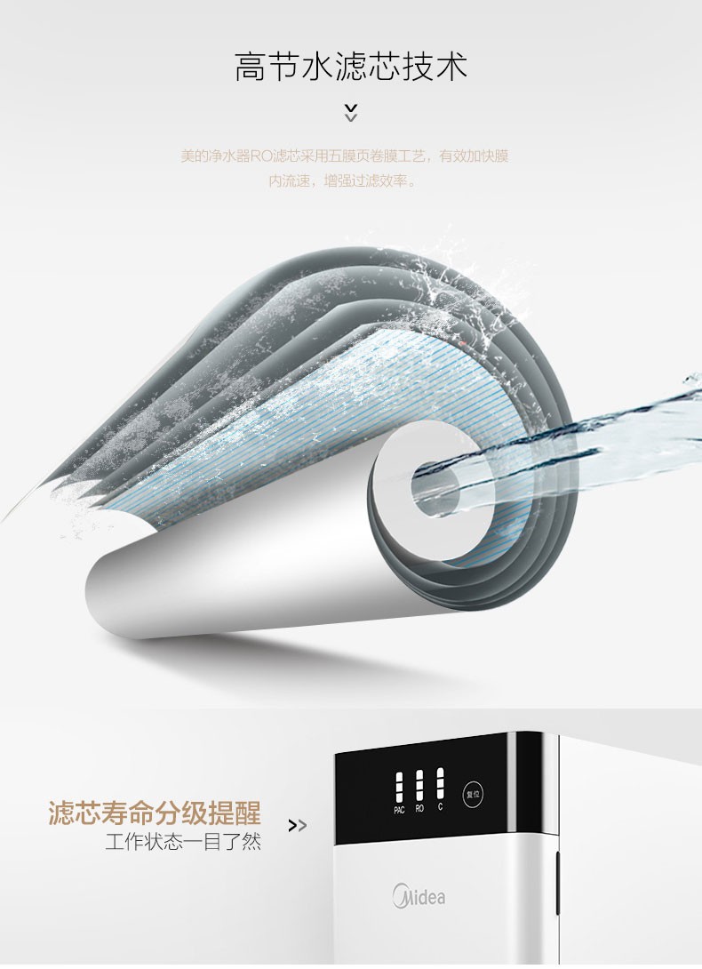 美的净水器家用直饮自来水过滤器反渗透智能净水机MRO1790B-400G