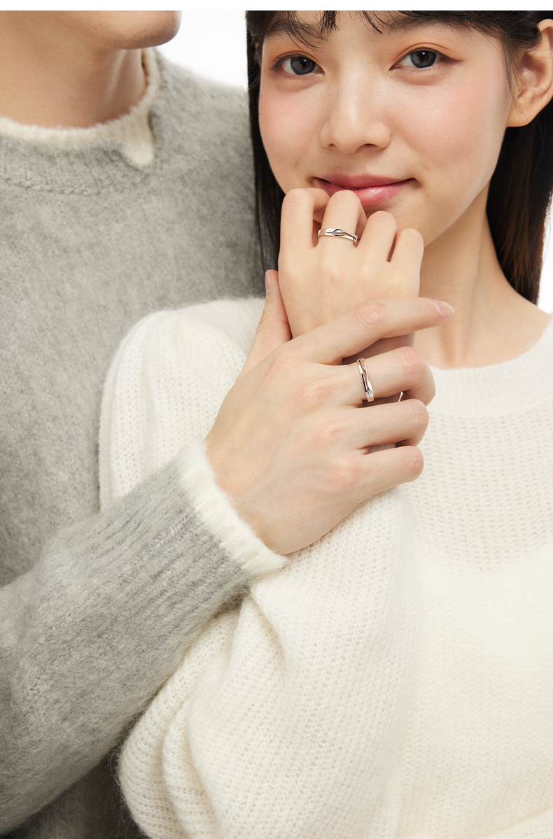 卡蒂罗KADER 相思乔木情侣对戒 连理枝镂空输液刻调节磨砂纹理 999足银 戒指 节日礼物 送女友