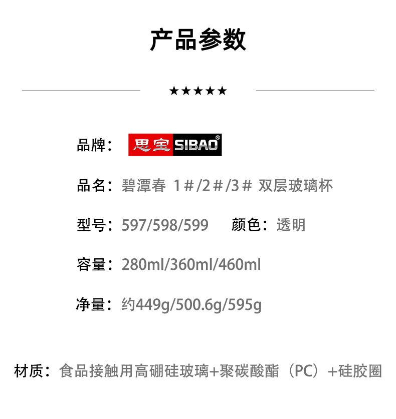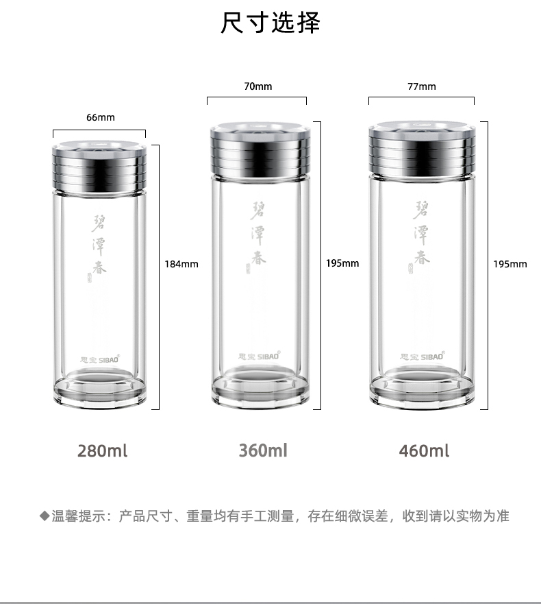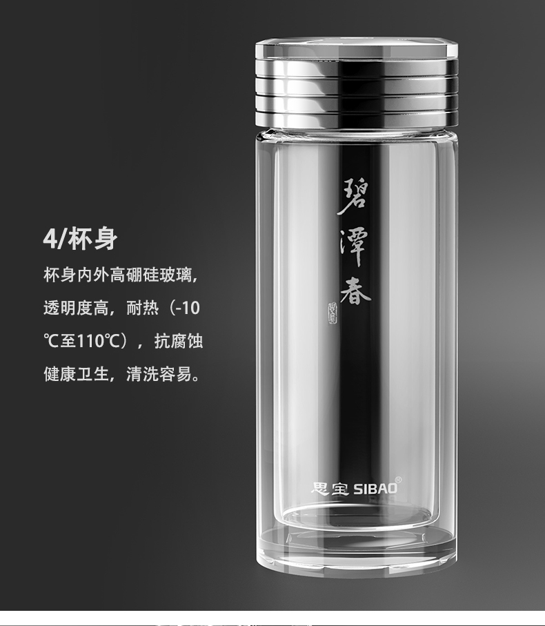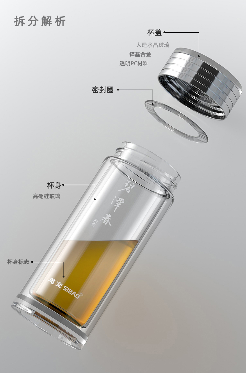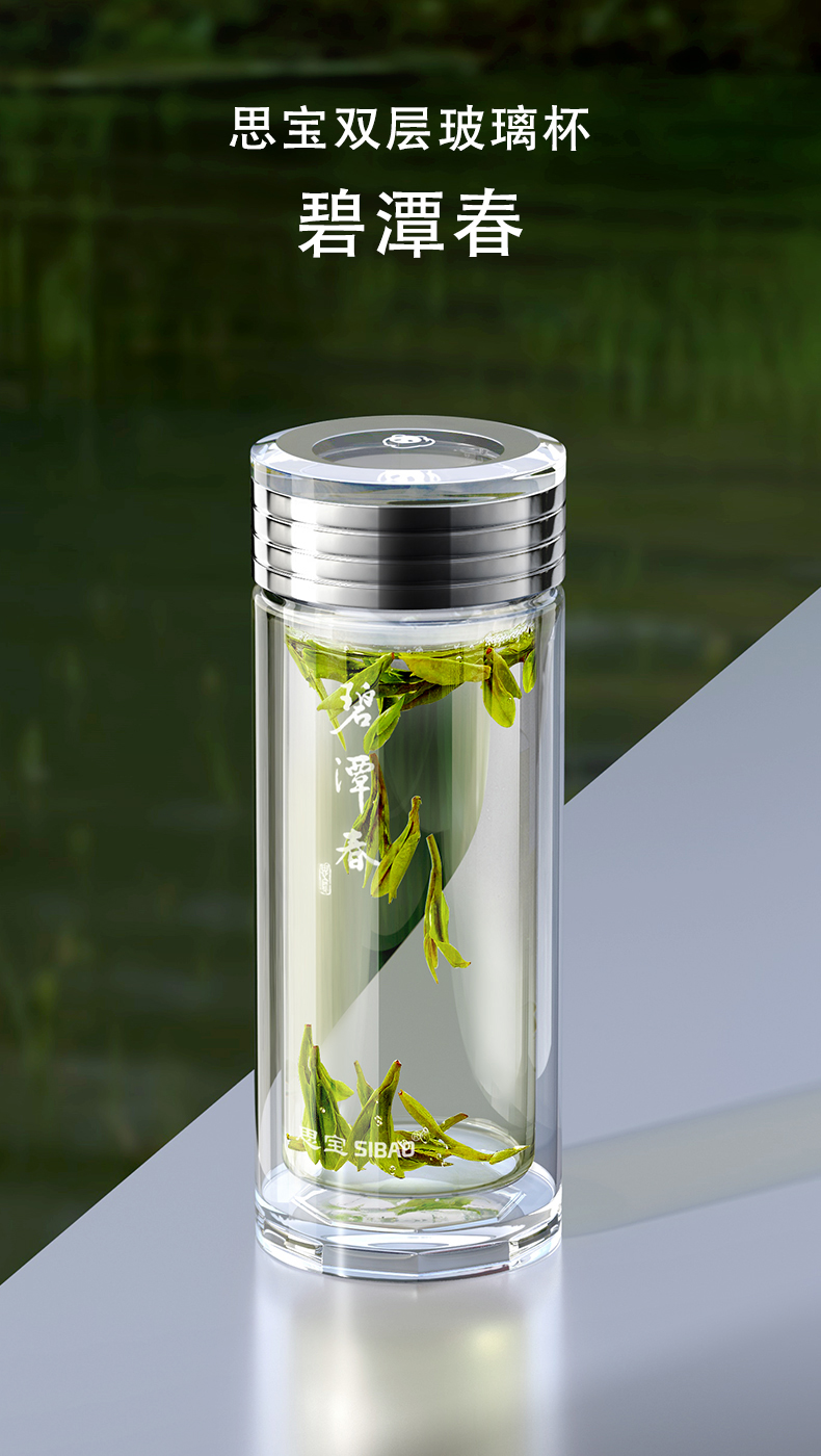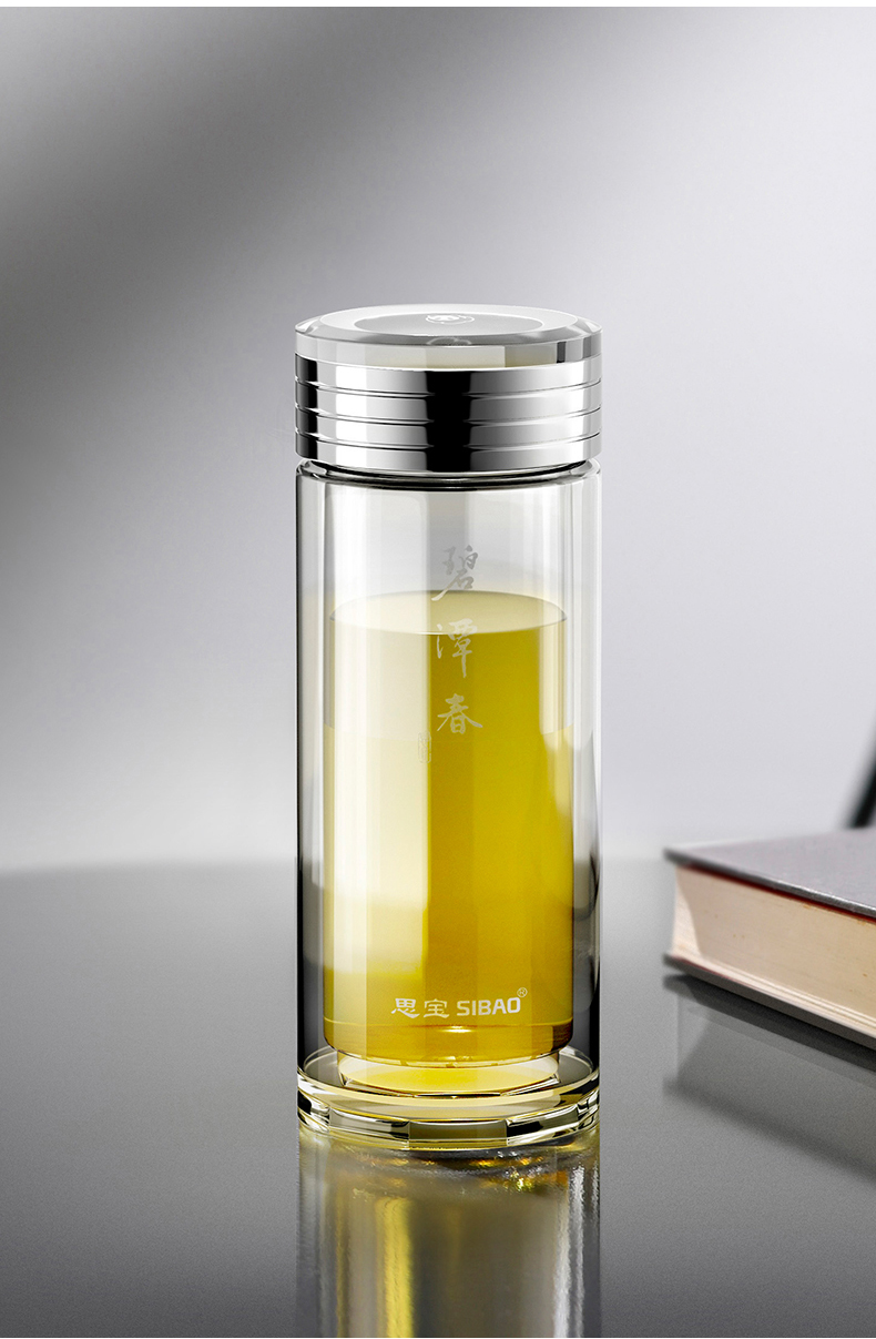思宝旗舰店碧潭春双层玻璃杯长辈生日商务礼品办公室便携红绿茶杯