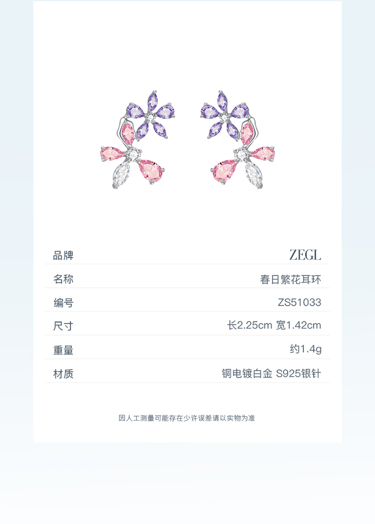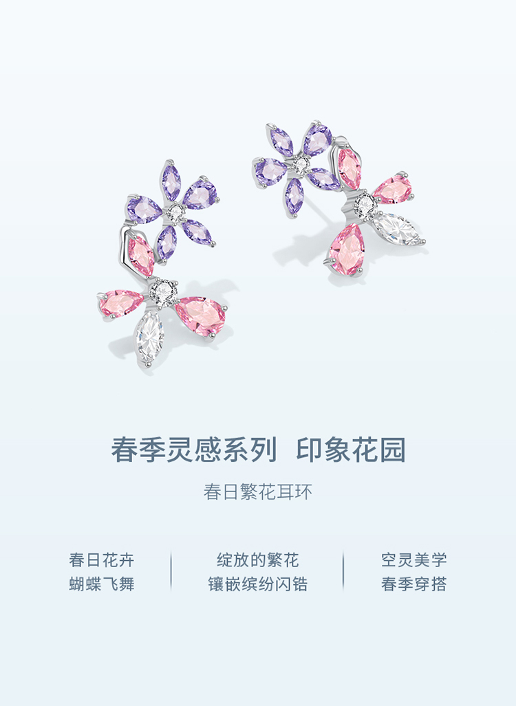 ZEGL设计师印象花园系列繁花朵耳环女小众高级感耳钉925银针耳饰