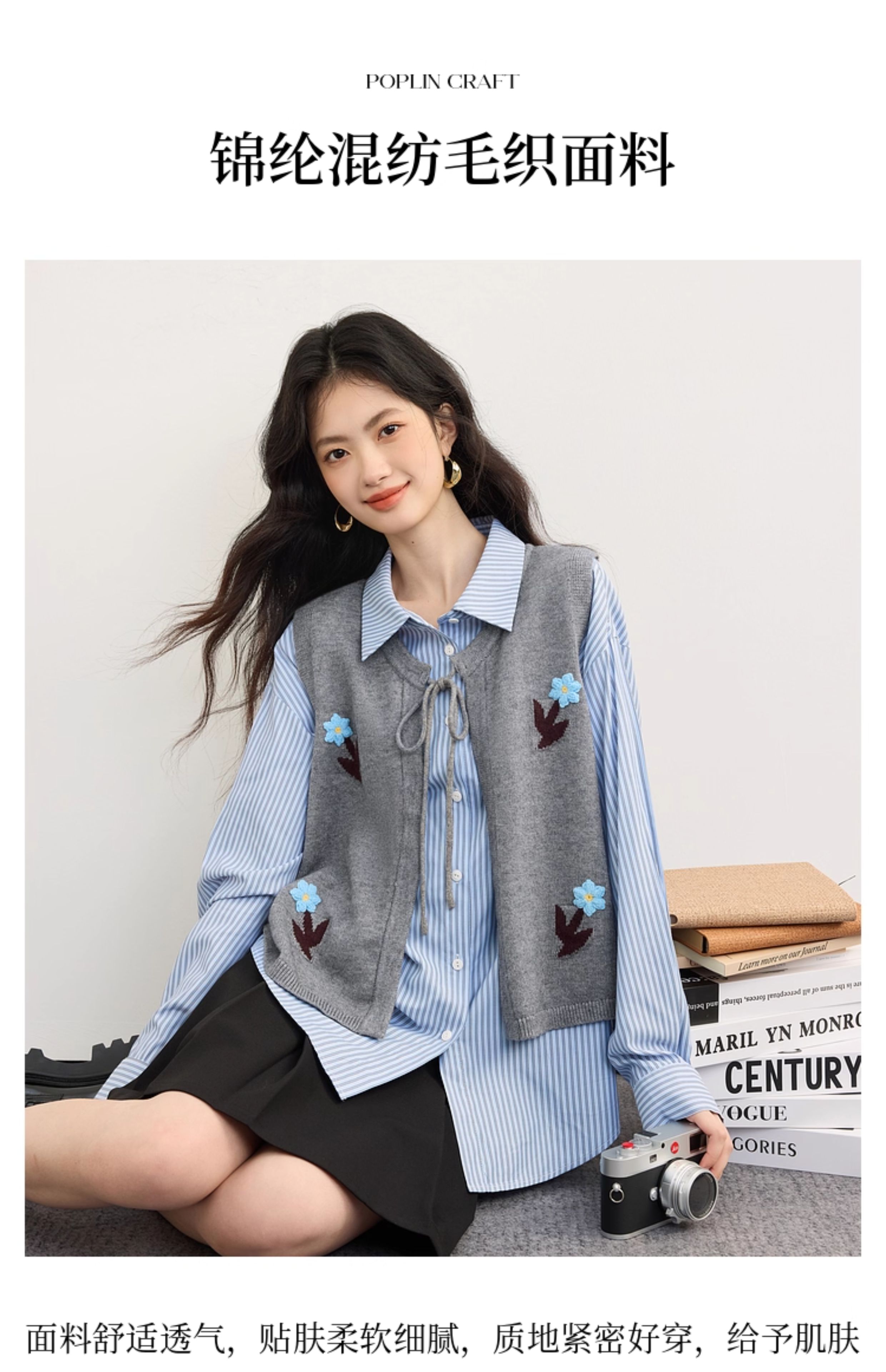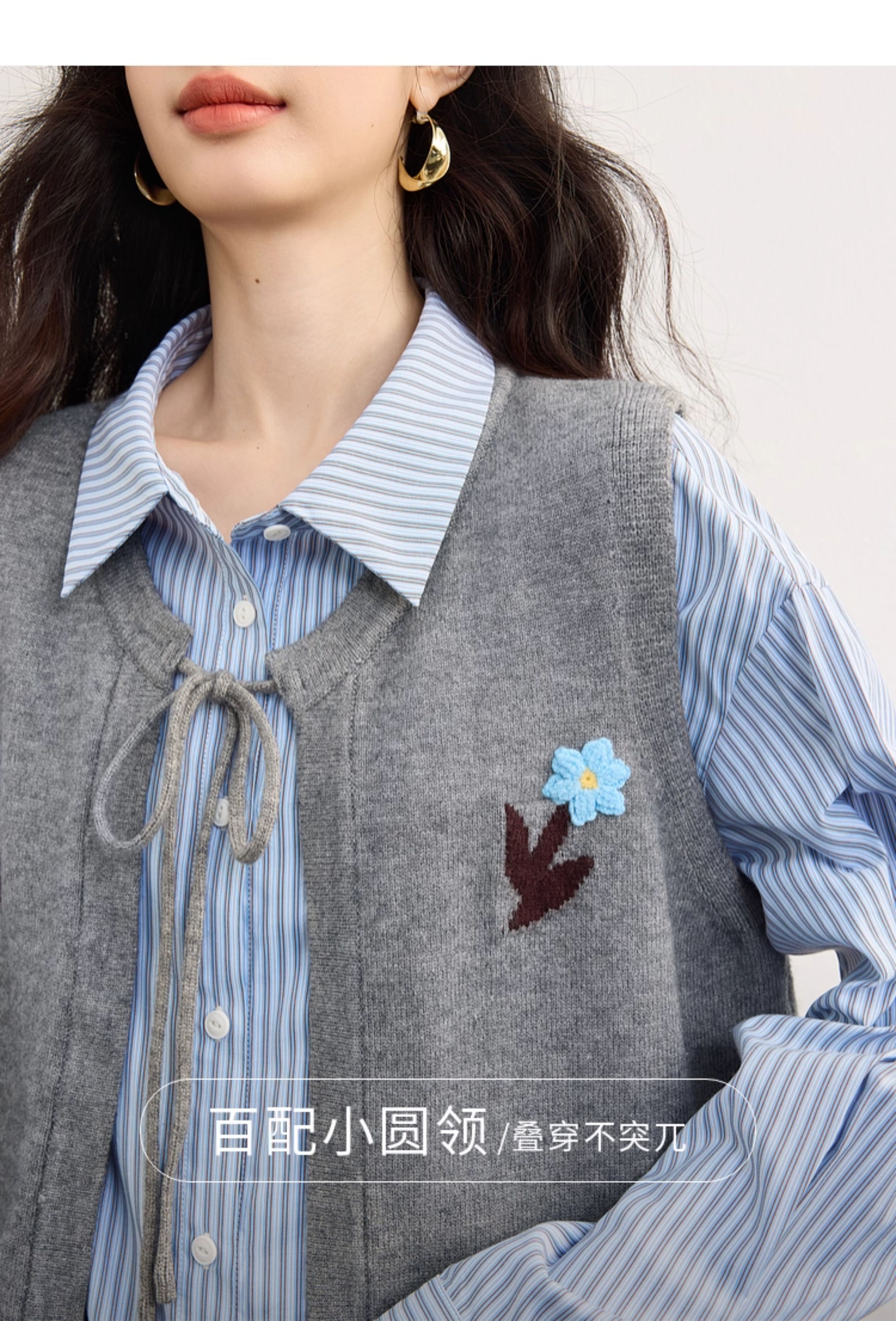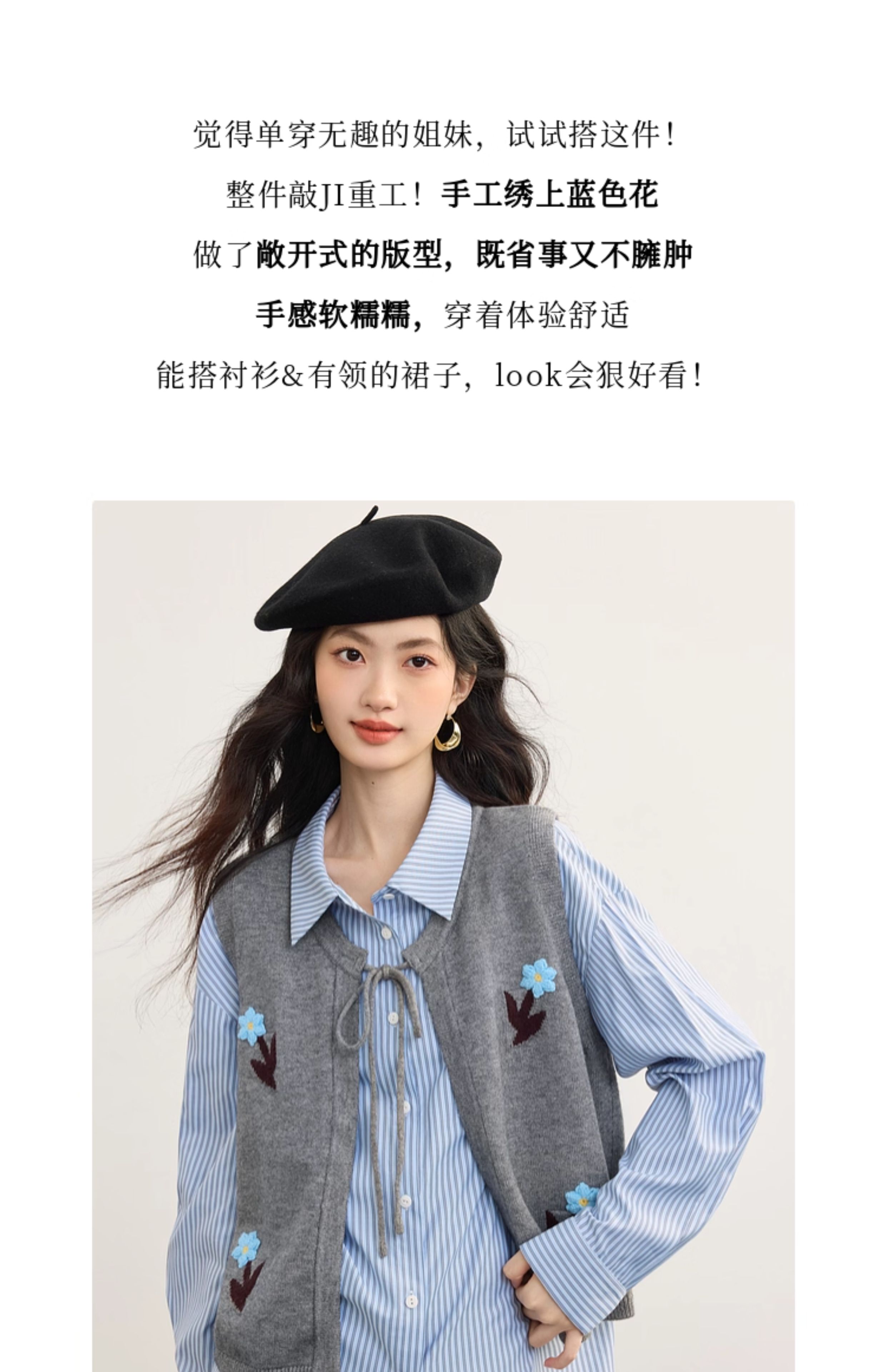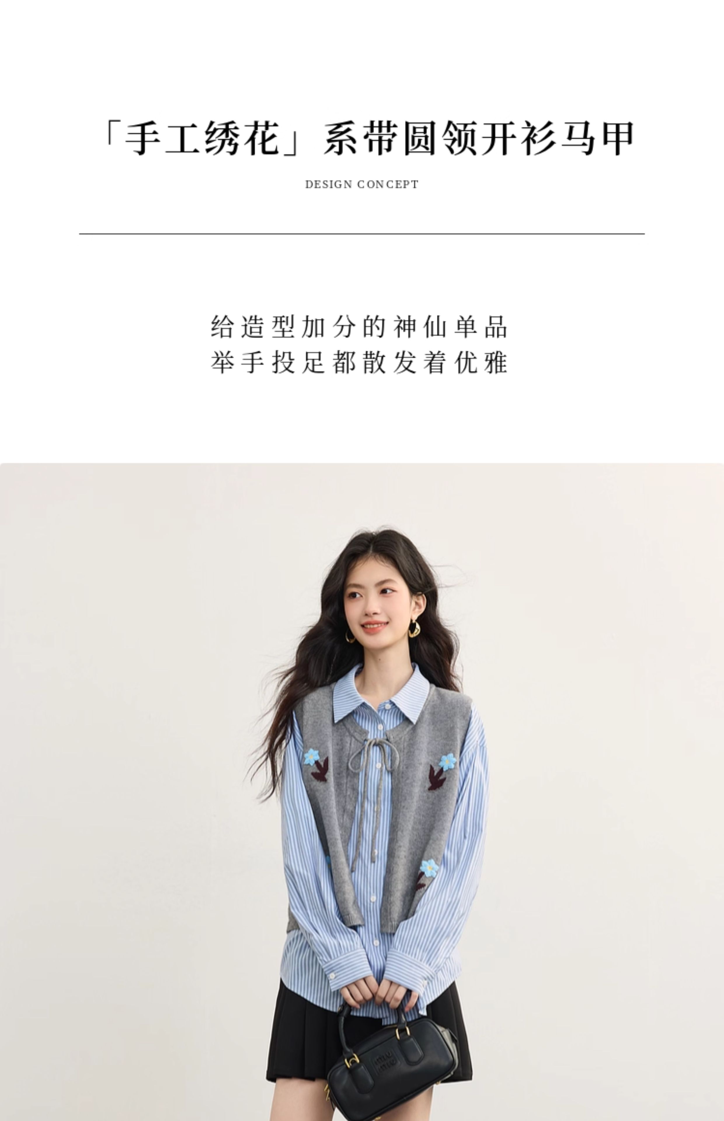 【08/19新品】熙世界手工绣花圆领针织马甲女设计感坎肩开衫上衣秋季配衬衫穿搭