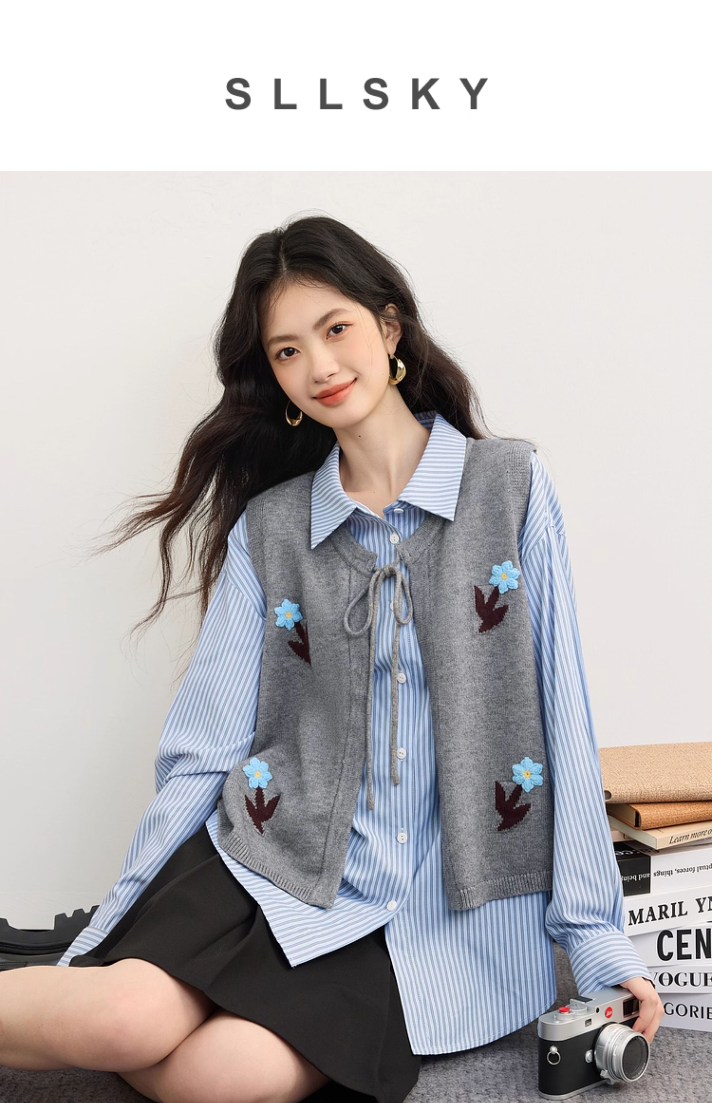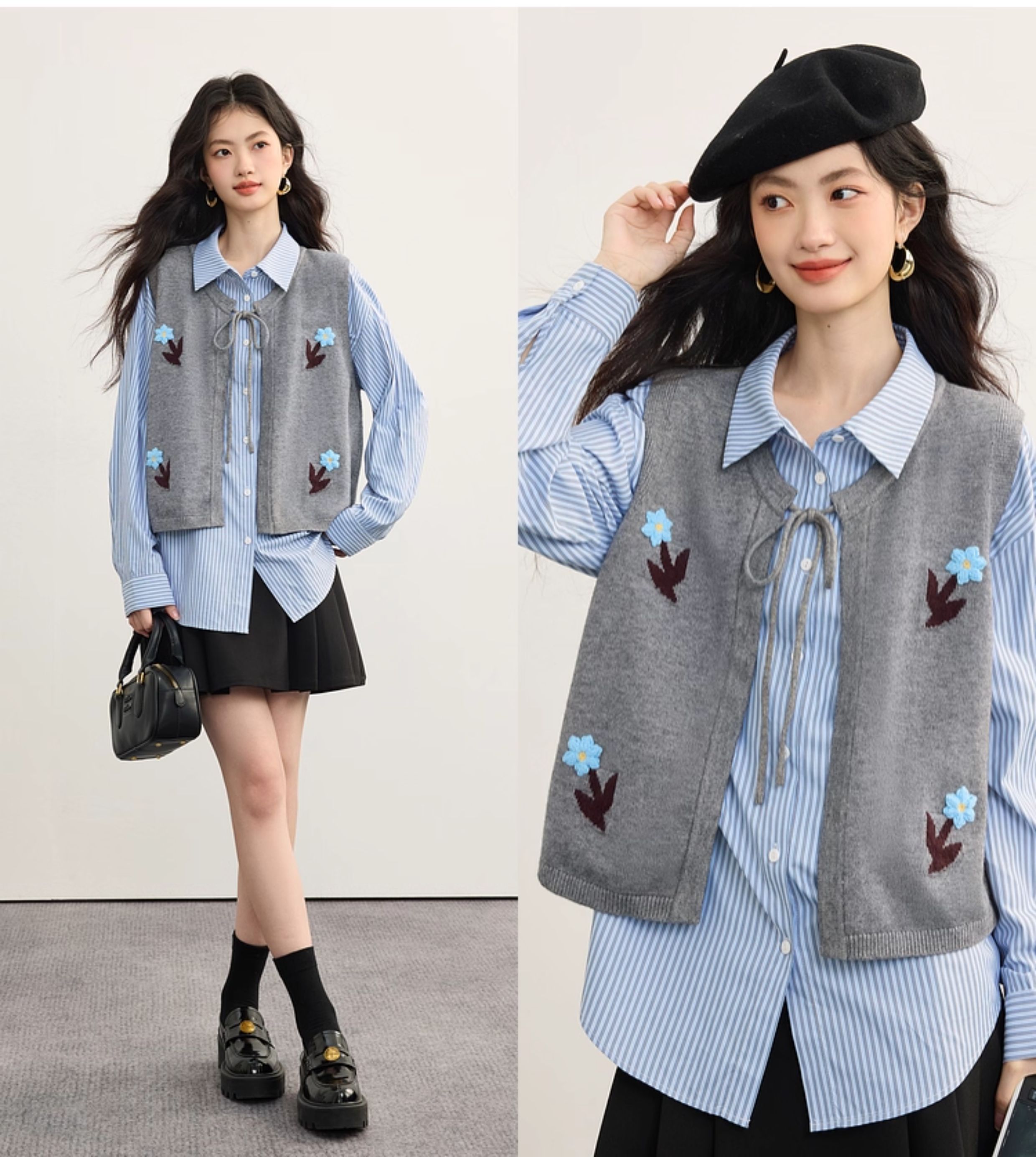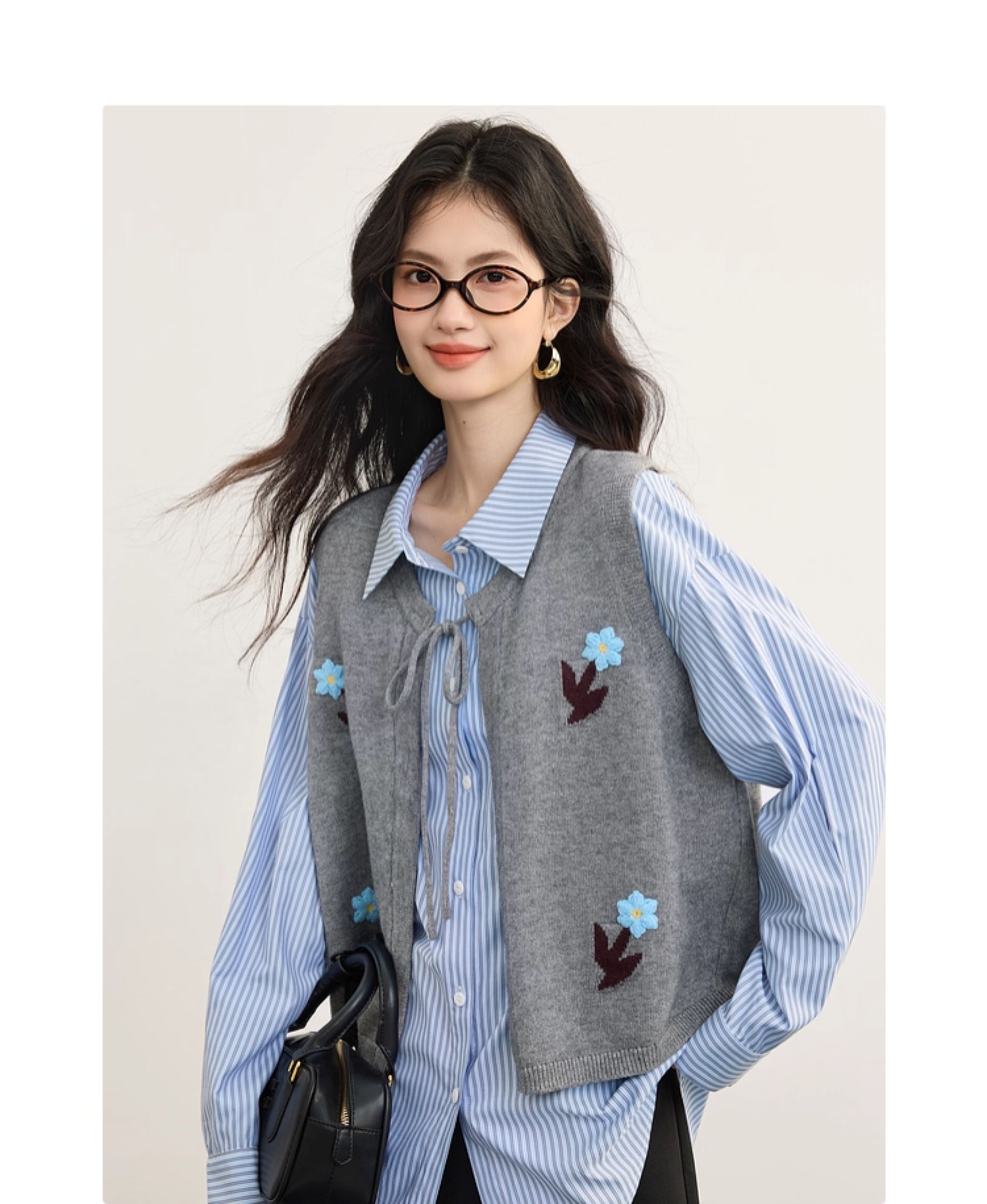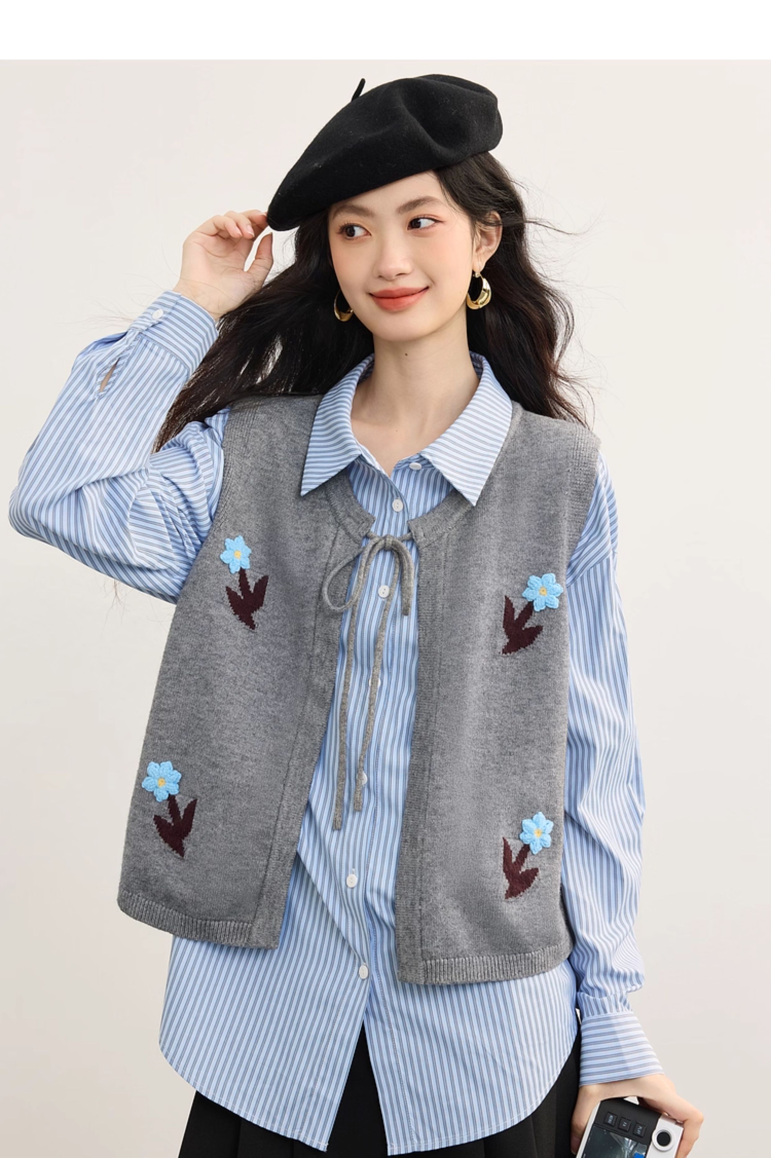 【08/19新品】熙世界手工绣花圆领针织马甲女设计感坎肩开衫上衣秋季配衬衫穿搭