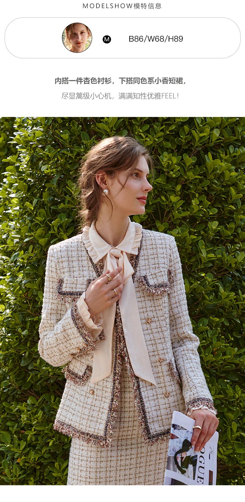 欧芮儿小香风短外套女新款2021宽松显瘦时尚气质小众杏色上衣