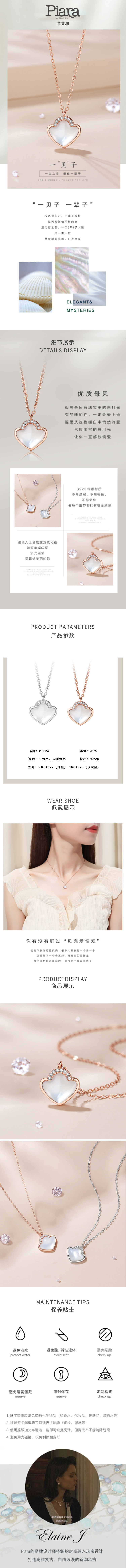 PIARA 一贝子项链女纯银时尚韩版母吊坠小众ins心形锁骨链