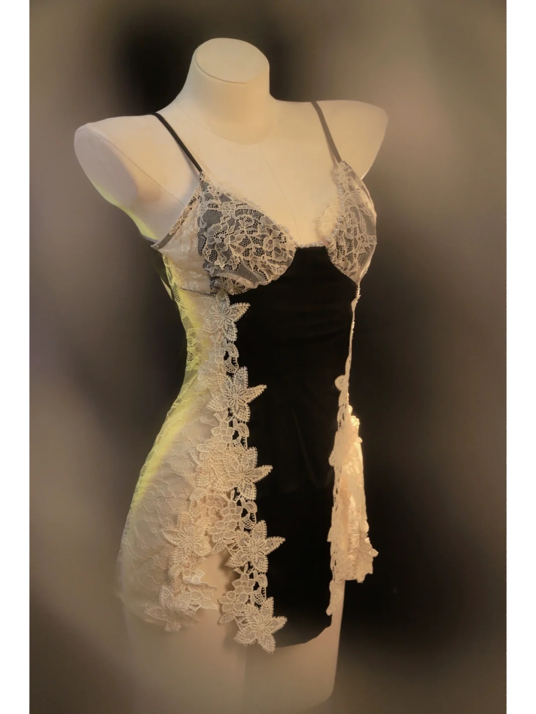细吊带睡衣加上超性感的若隐若现蕾丝
